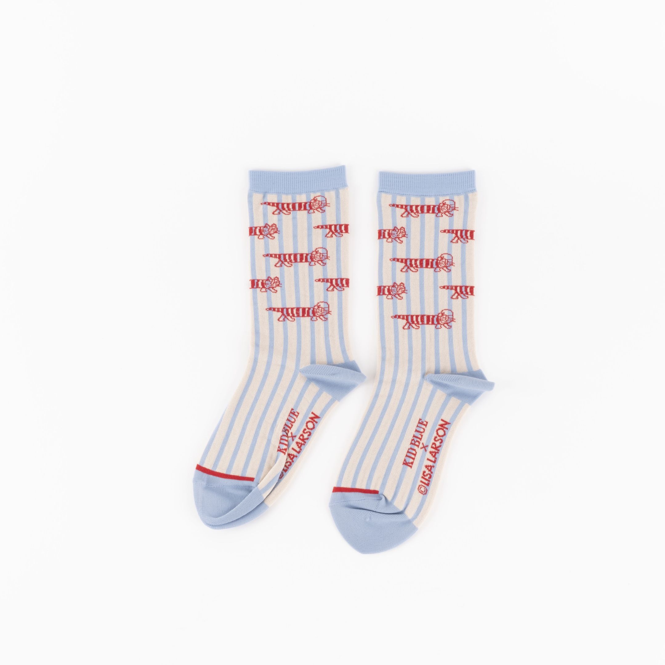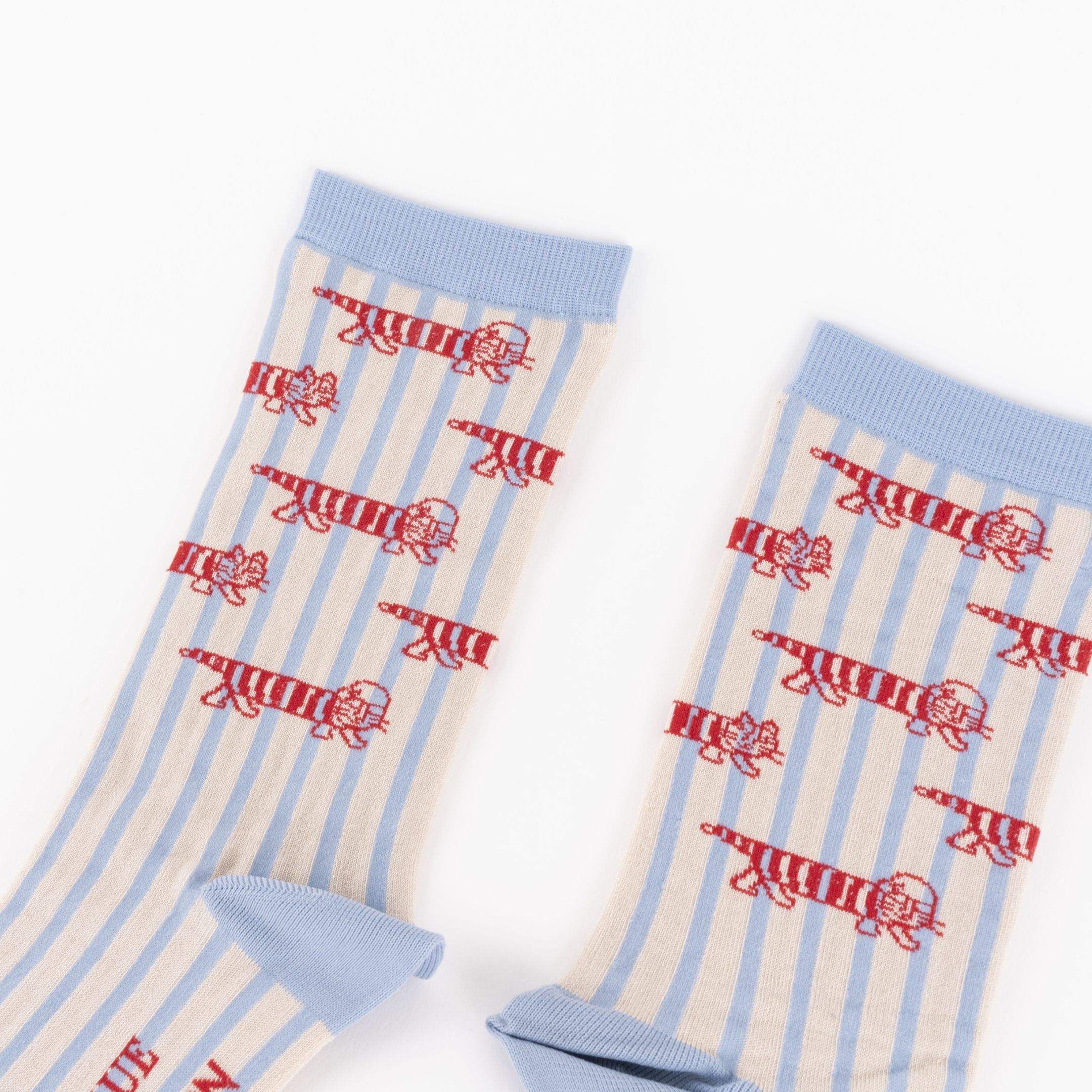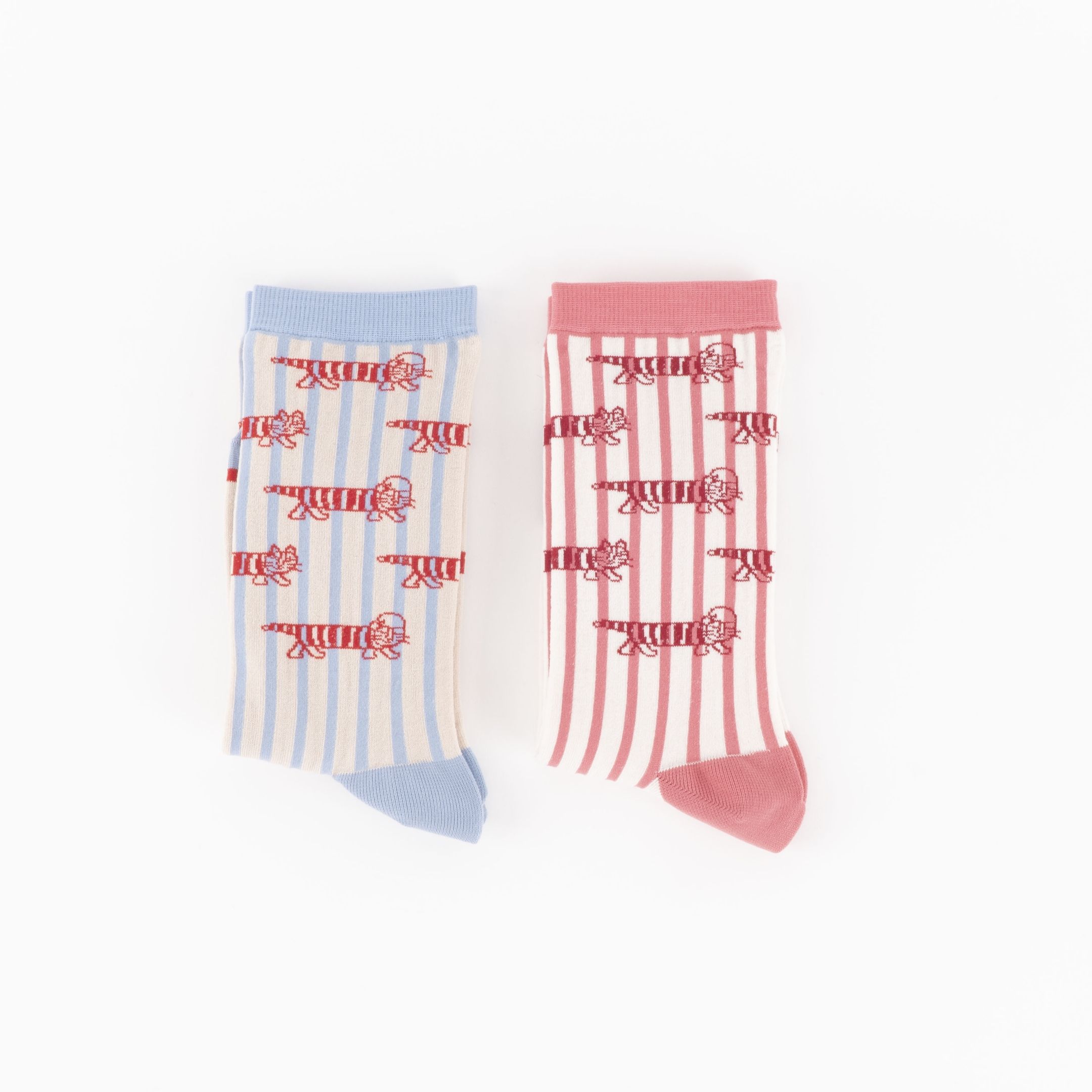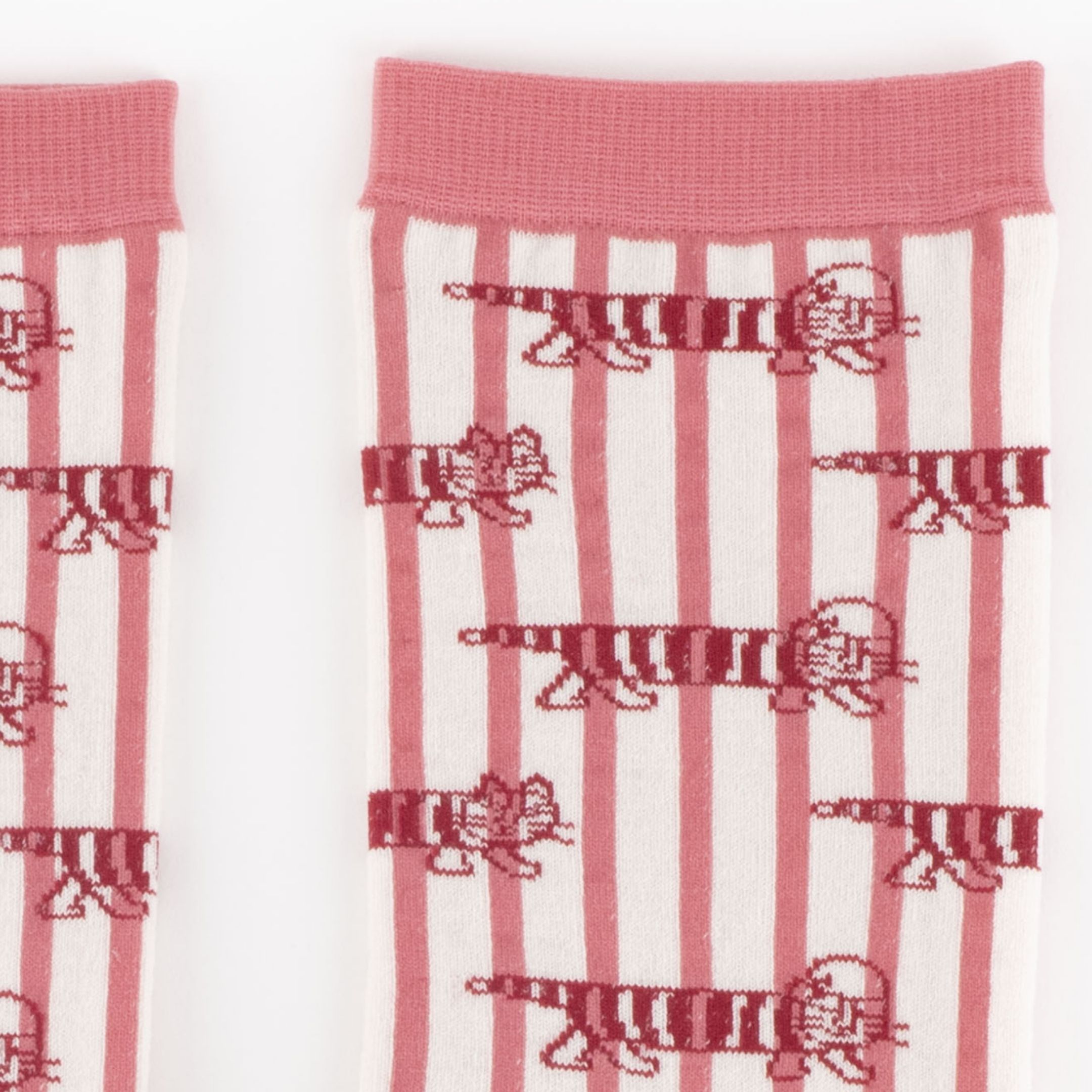 ソックスは遊び心のある配色で、ストライプ柄の上に大胆にマイキーを組み合わせました。 プリントではなくジャカードで表現しています。 パジャマ、ナイティと合わせてアクセントとして楽しんでください。