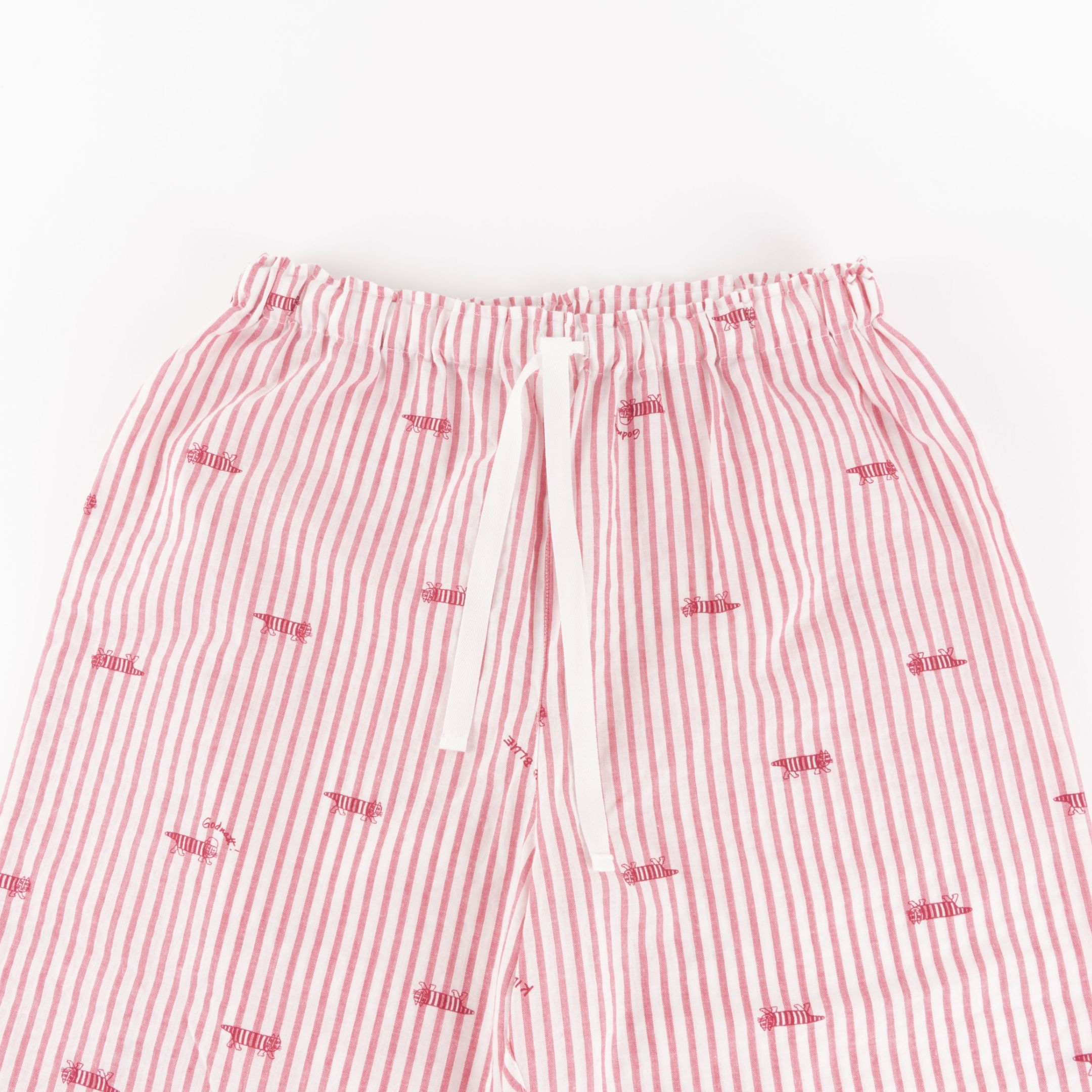 KID BLUEのシグネチャーテキスタイルの一つ、先染めの「KB ストライプ」に縞々のマイキーをプリント。KID BLUE定番カラーのサックスに加え、マイキーをイメージしたレッドの2色展開です。