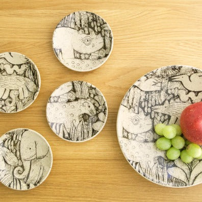 Forest and animal picture plates (Mashiko ware / rhinoceros) 4 inches