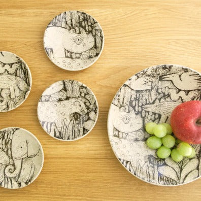 Forest and animal picture plates (Mashiko ware / elephant) 4 inches