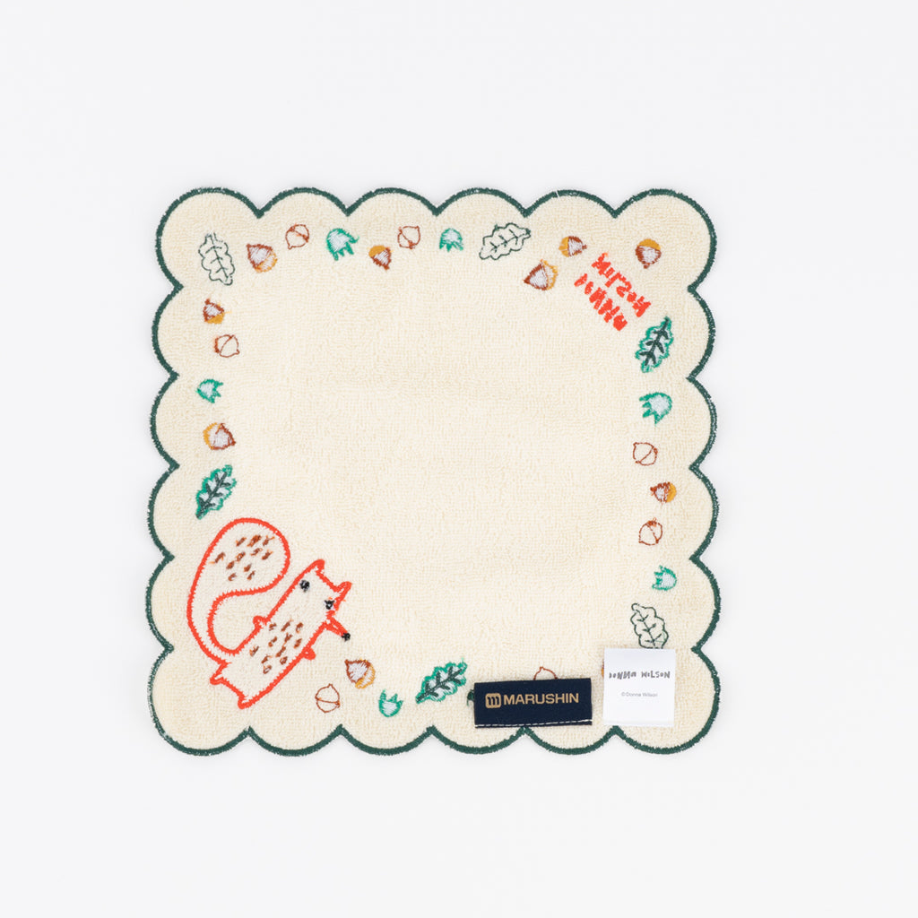 ドナ・ウィルソンのクリーチャー、キツネリスのシリルがデザインされたミニタオルです。