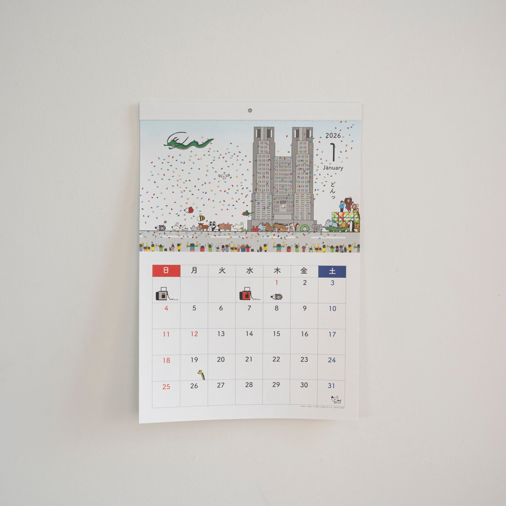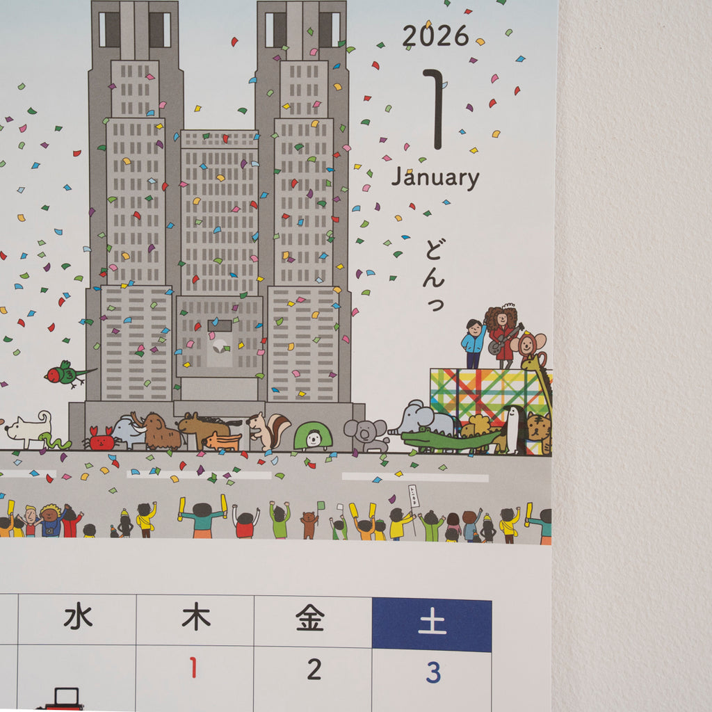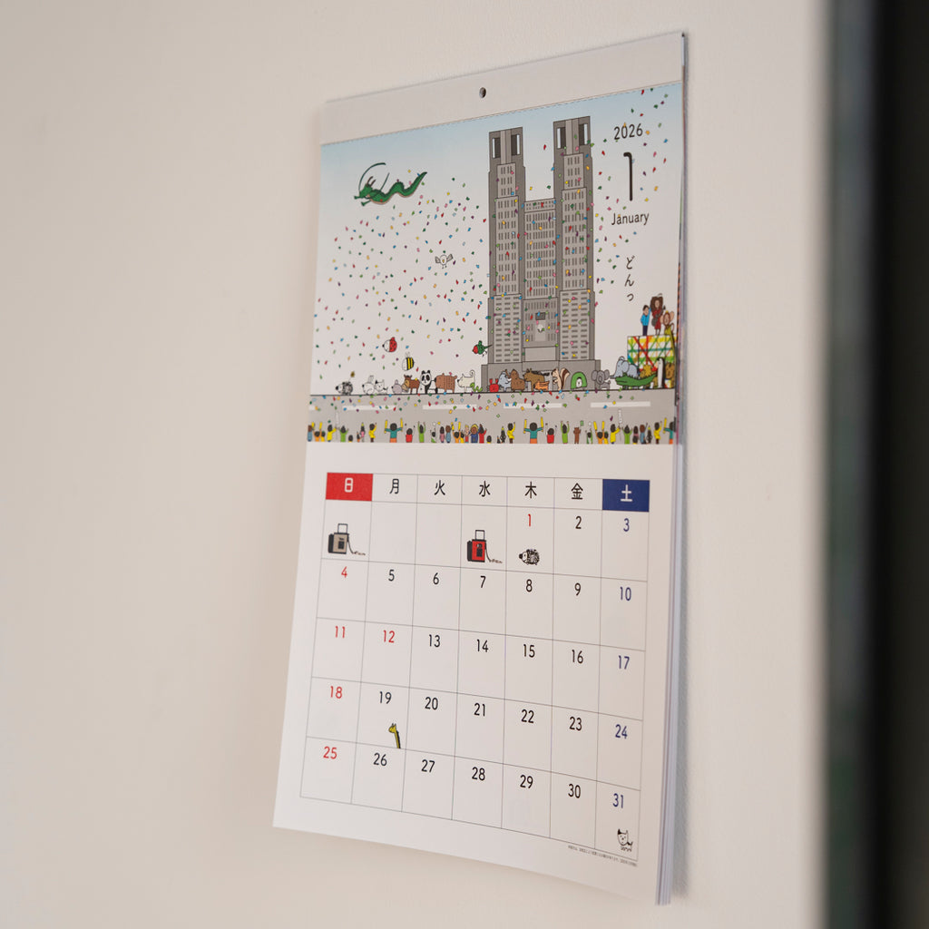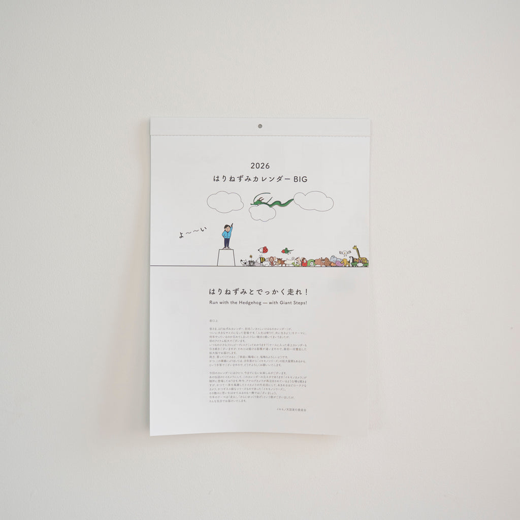 はりねずみカレンダー、別名「いきとしいけるものカレンダー」の2026年版の登場です。本年はいつもの小さな卓上サイズに加えて、大きな壁掛けタイプも初登場します。大きなほうは絵の面積が大きいので、いろいろ描きこんであります。両方お買い求めくださるときっと楽しいはずです。
