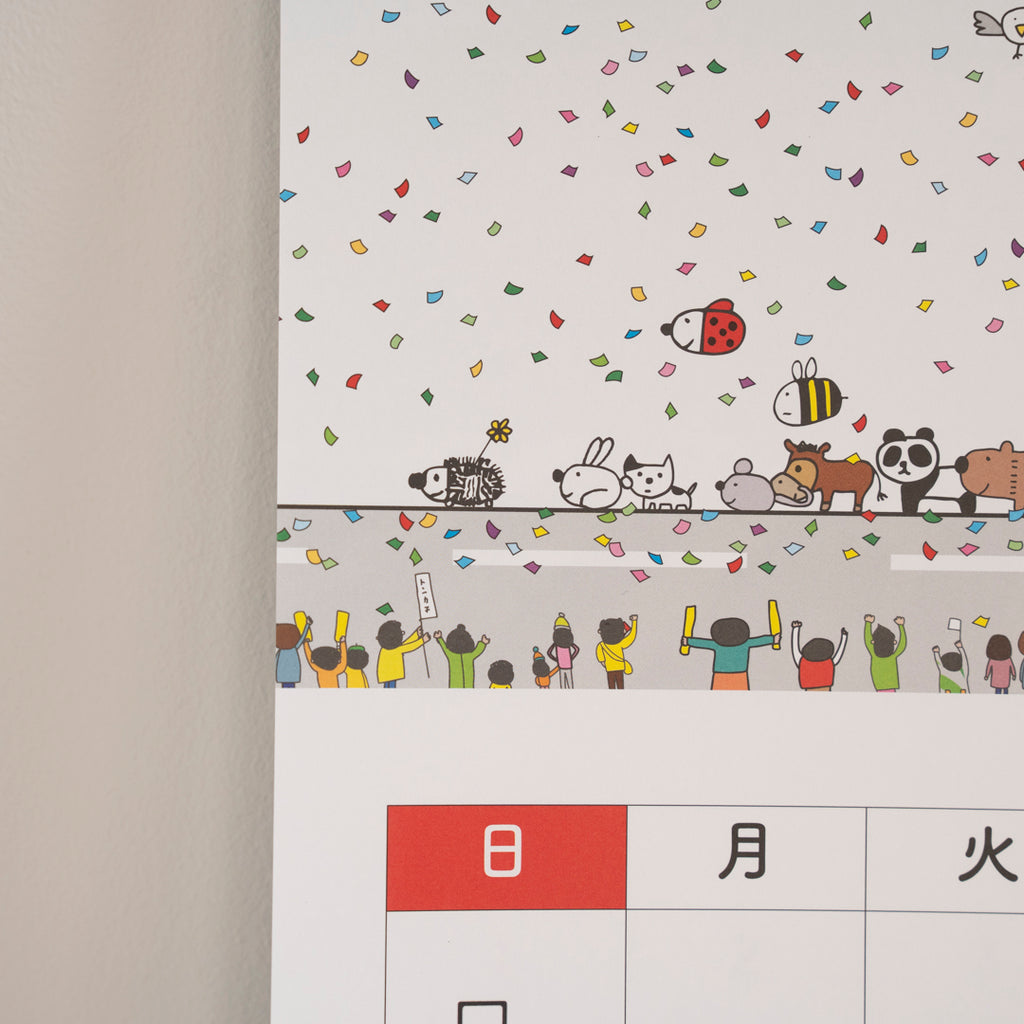 皆さま、はりねずみカレンダー、別名「いきとしいけるものカレンダー」が、ついに大きなサイズになって登場です。「人生は祭りだ、共に生きよう」をテーマに、何年やっているのか忘れてしまったぐらい随分と続いてまいりましたが、初のアイテム拡大でございます。