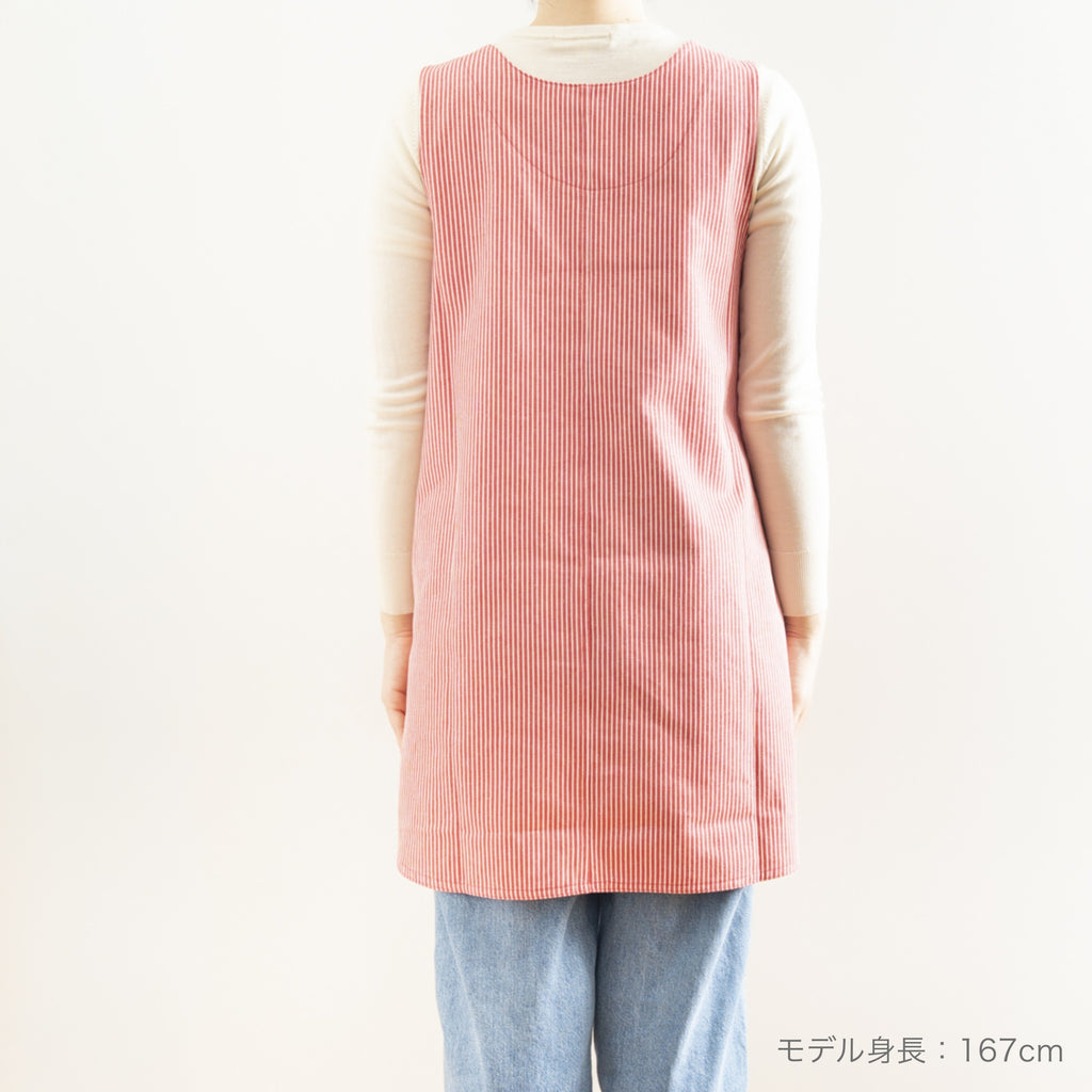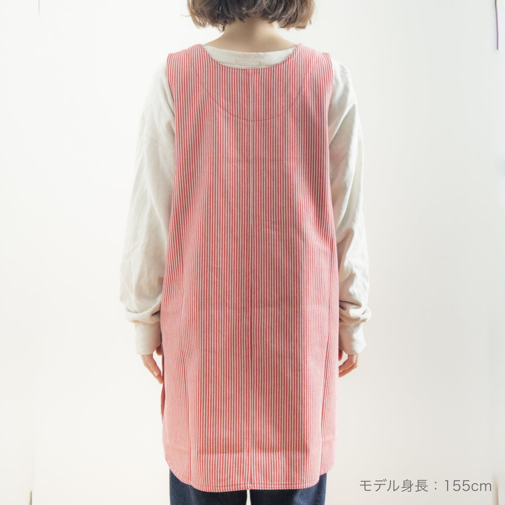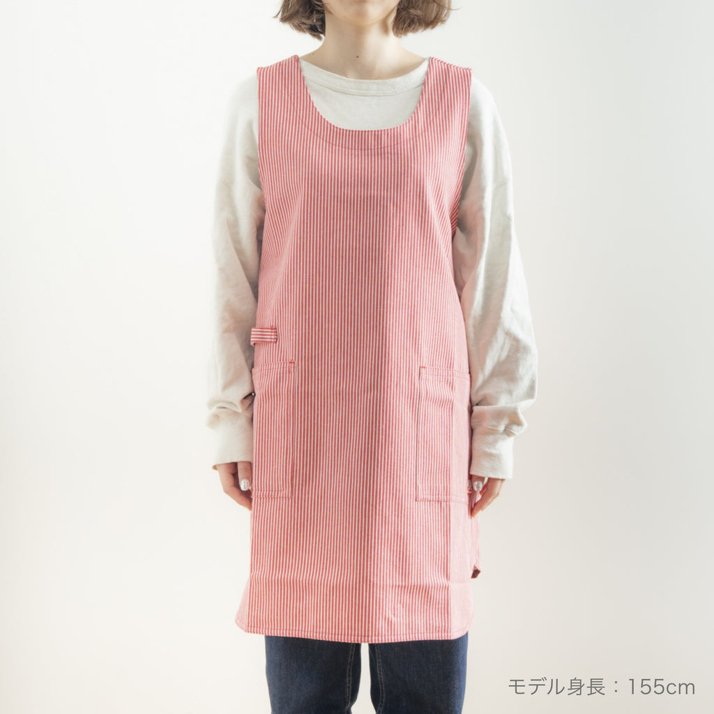 ワークウェアの定番として愛される「ヒッコリー」素材のエプロンとお揃いのトートです。細いストライプ模様が特徴で、汚れが目立ちにくく、丈夫でカジュアルな風合いが魅力。ヒッコリーとは、ワークパンツなどによく使われる、厚手で丈夫なストライプ柄の生地のこと。お洗濯にも強く、使い込むほどに馴染むのが特徴です。