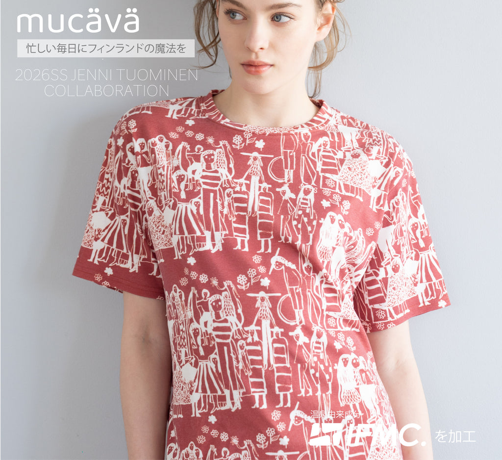 「mucava」は、フィンランド由来のデザインを取り入れたワンマイル・ルームウェアブランド。 着るだけで血行促進が期待される「IFMC.(イフミック)」加工の生地を使用し、 日々のリラックスタイムに寄り添うアイテムを展開しています。