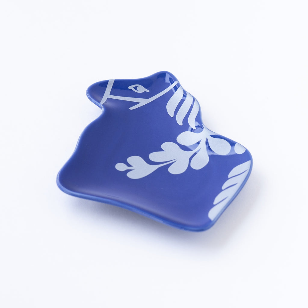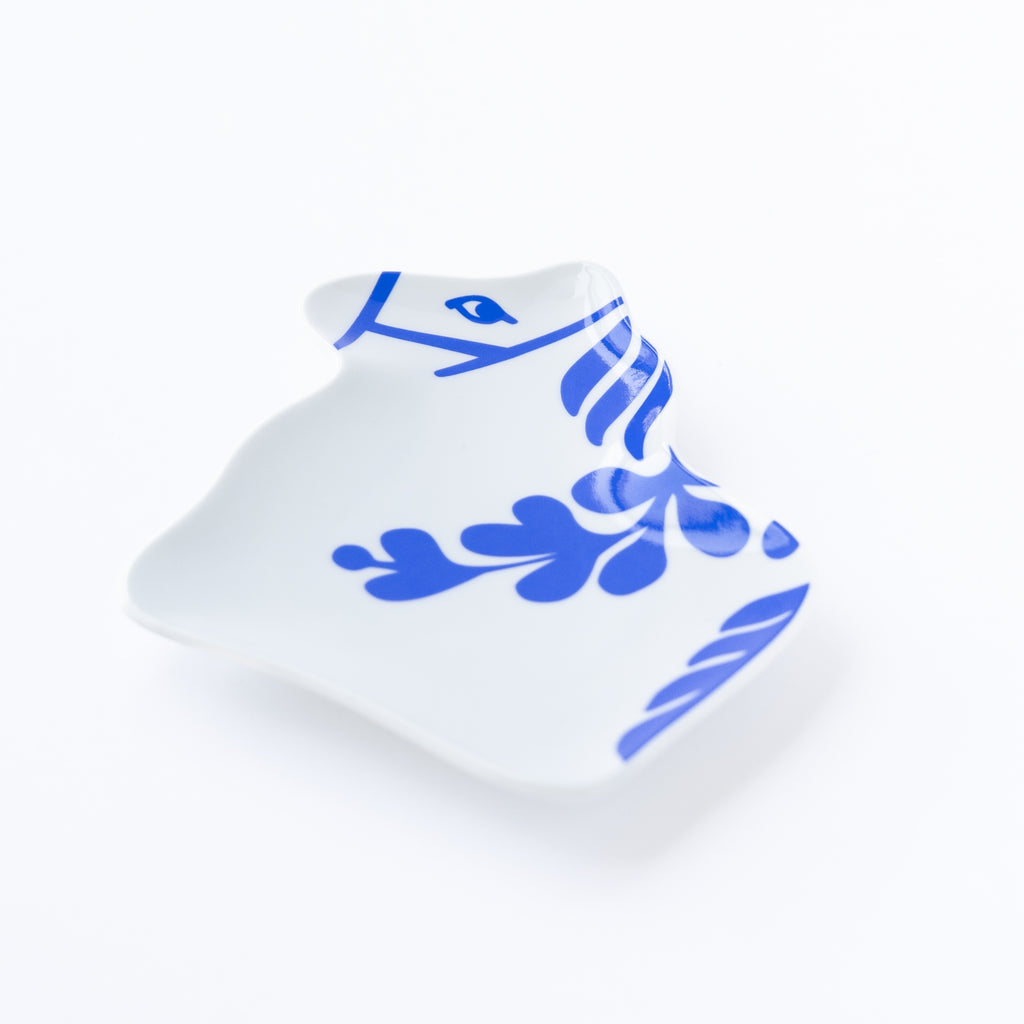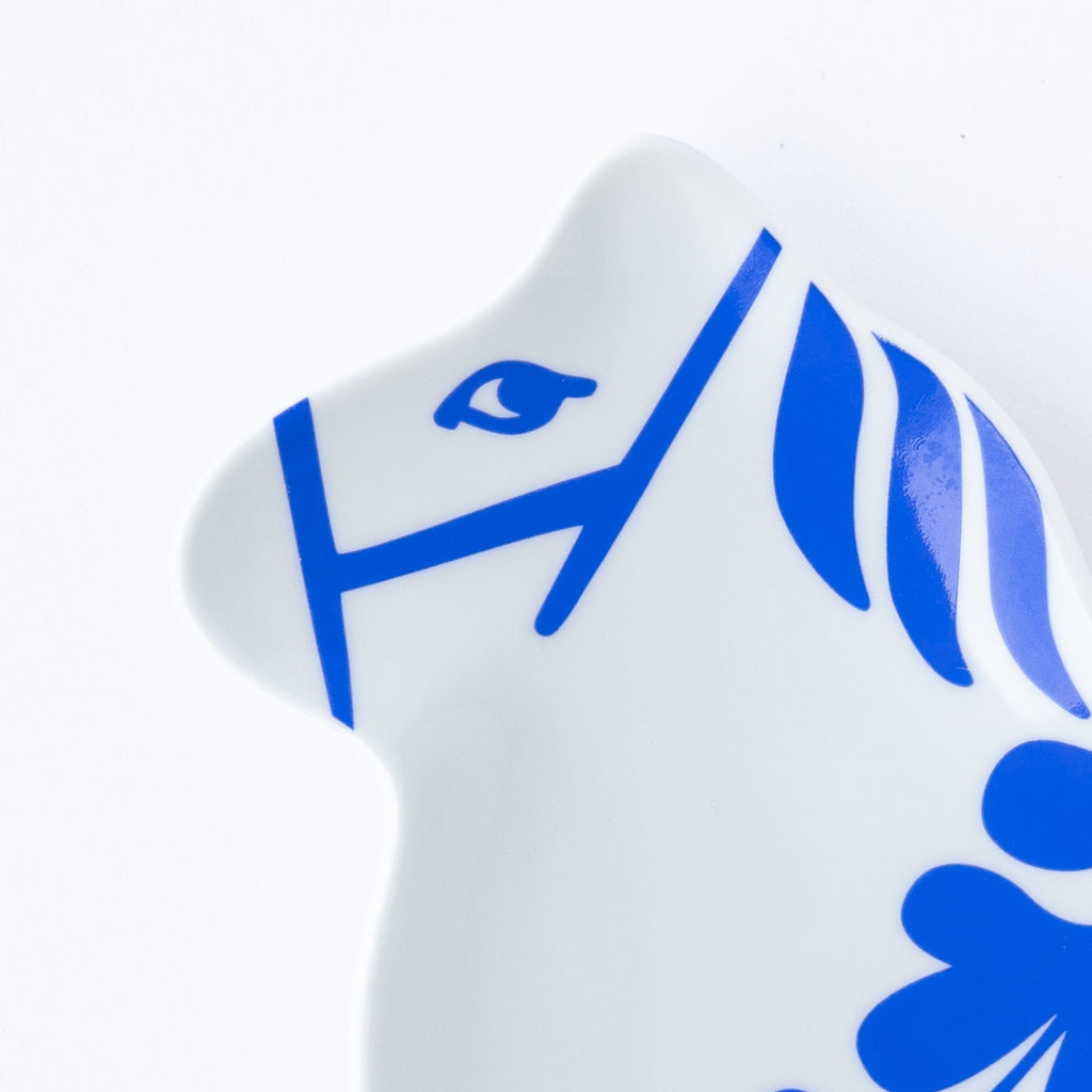 「ココロシズカの午(うま)」のフォルムをいかしたダイカット豆皿小さなおかずやお醤油皿、デザート皿としてもお使いいただけます。アクセサリートレイとして洗面所にちょこんとおいても素敵です。