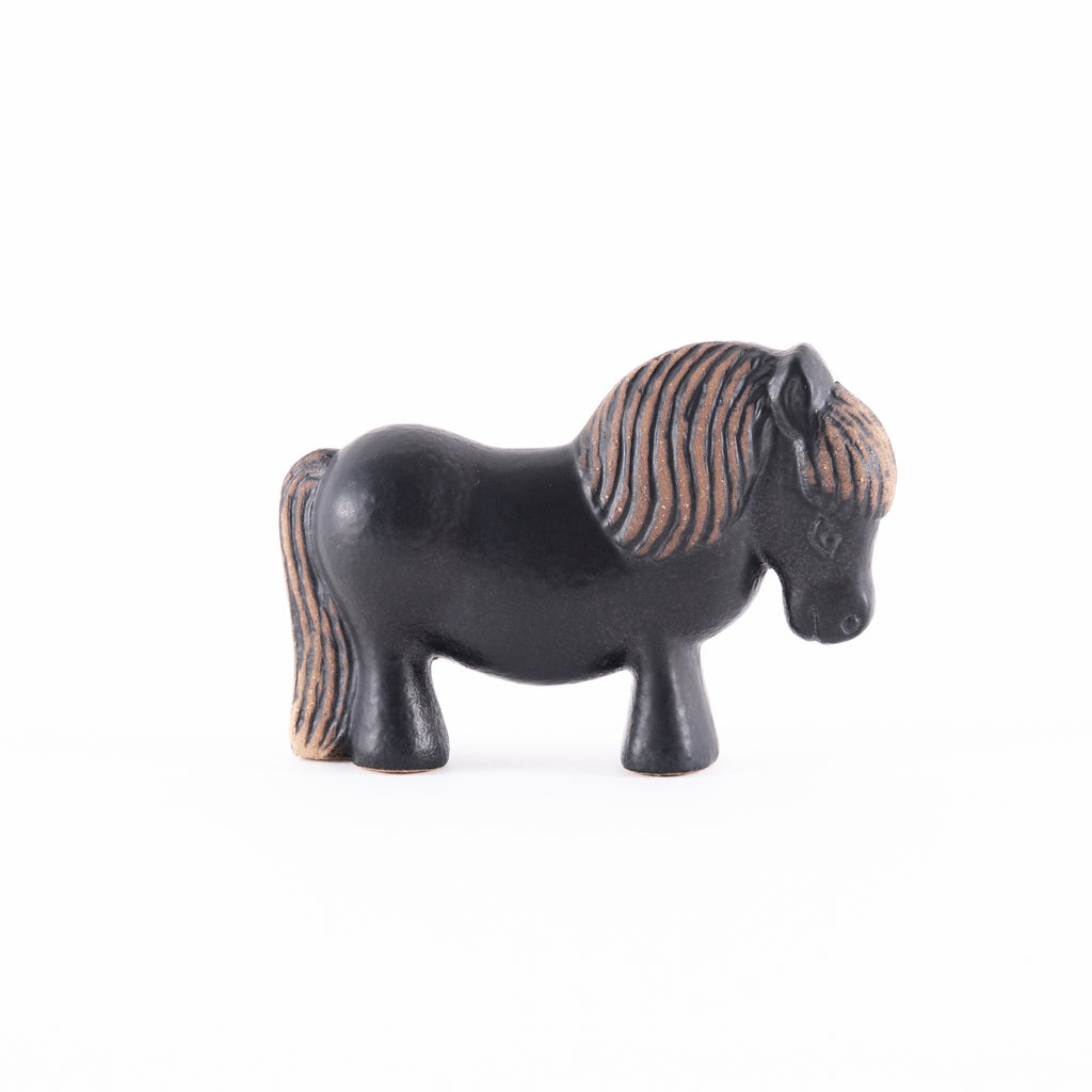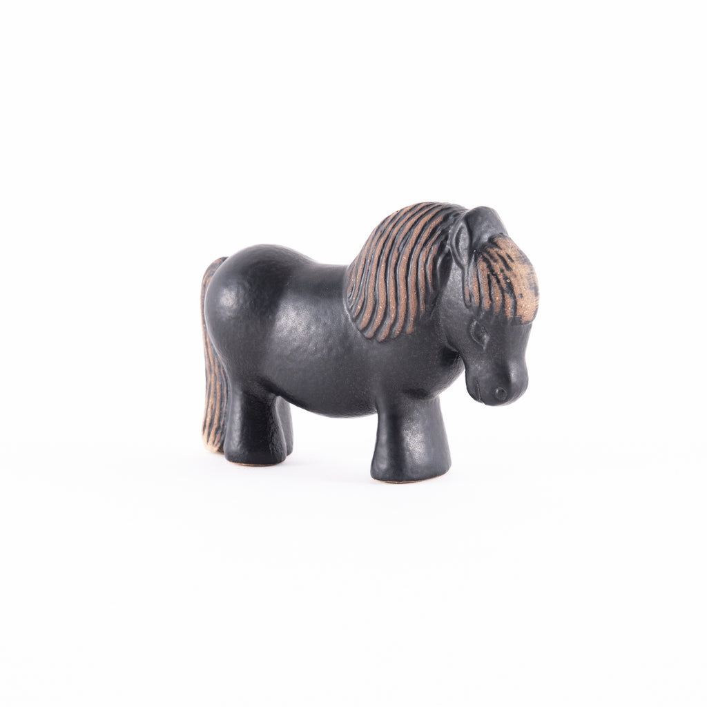 2026年の午(うま)年に合わせて、スウェーデンのケラミックスタジオで制作された、新色・ブラックのポニーです。もともとの茶色のポニーは、1977〜83年に作られたスウェーデンの「SKANSEN(スカンセン)」シリーズの復刻モデル。
