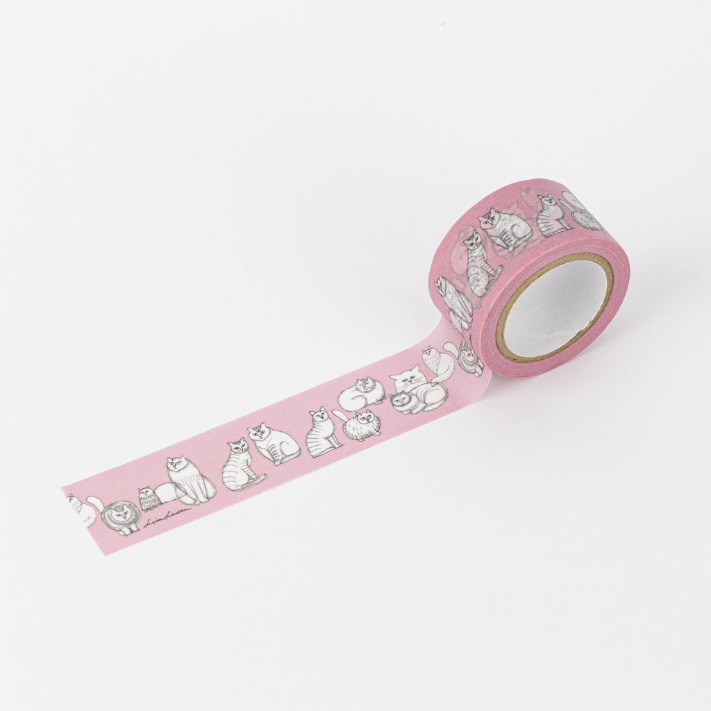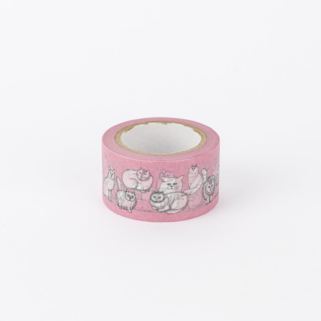 配置はマスキングテープ用に調整していますが、線の色や筆で描いたようなタッチはスケッチそのまま。ピンク色の背景とも相性がよく、デザインの表情がやさしく引き立ちます。