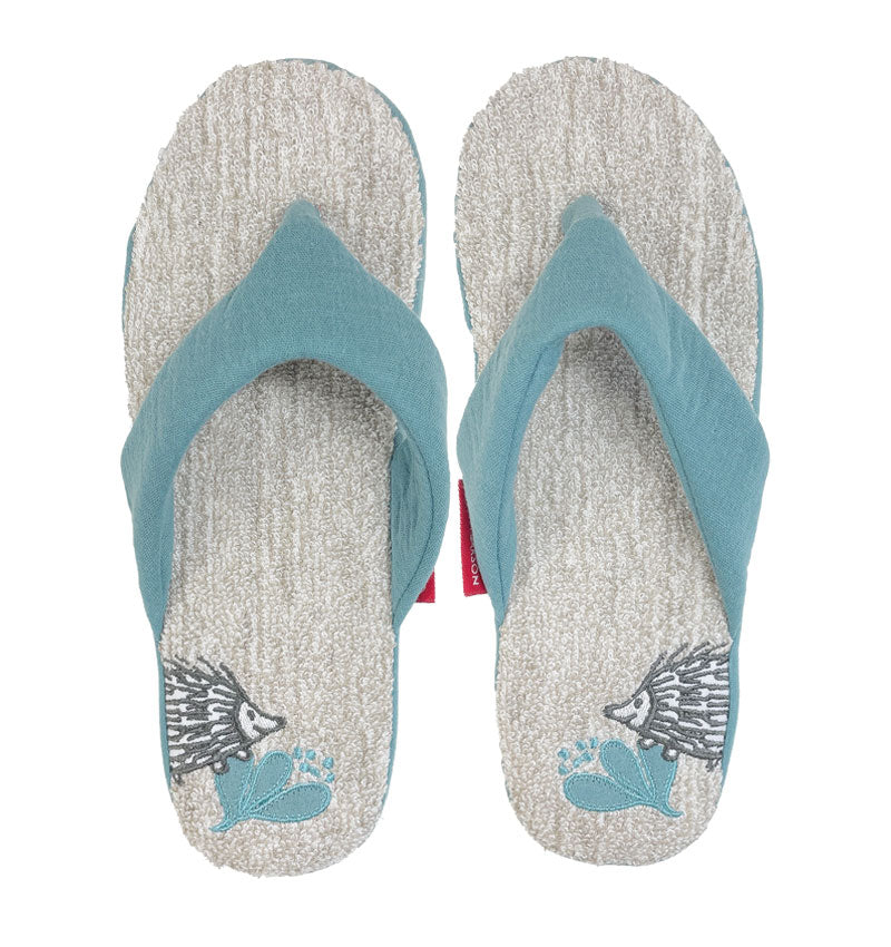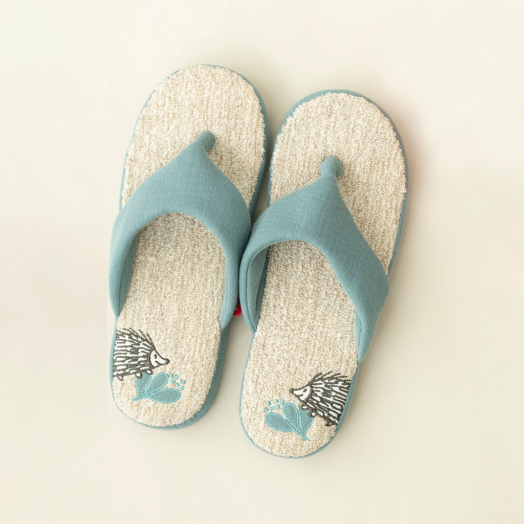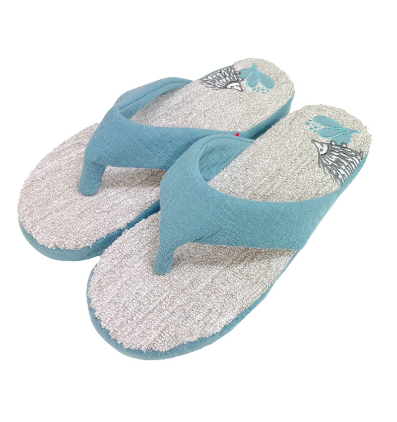 毎年大好評のビーチサンダルタイプのスリッパ。涼しい履き心地で蒸れにくく、春夏にぴったり!さらりとした生地なので、素足でも気持ちよく履いていただけます。底には中綿が入っており、ふわふわとしたクッション性でフローリングでも快適。おうちで水洗いできるのも嬉しいポイントです。