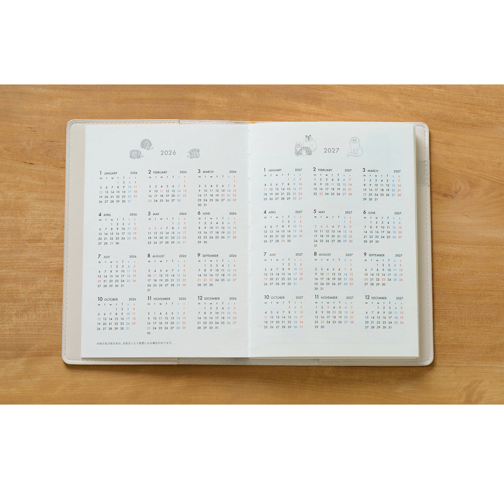 使い勝手のよいマンスリーとウィークリータイプで、祝日ははりねずみ3兄弟がお知らせしてくれて、マイキーは自分のお誕生日(4月20日)に登場したり、遊び心いっぱいの内容です。色違いしおりひも2本つき。