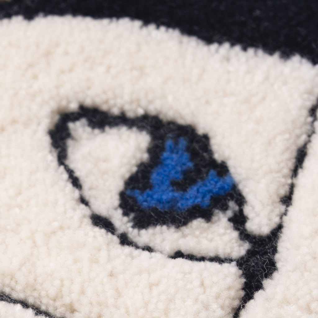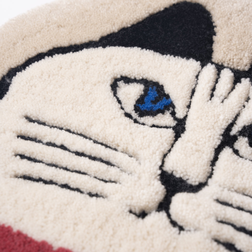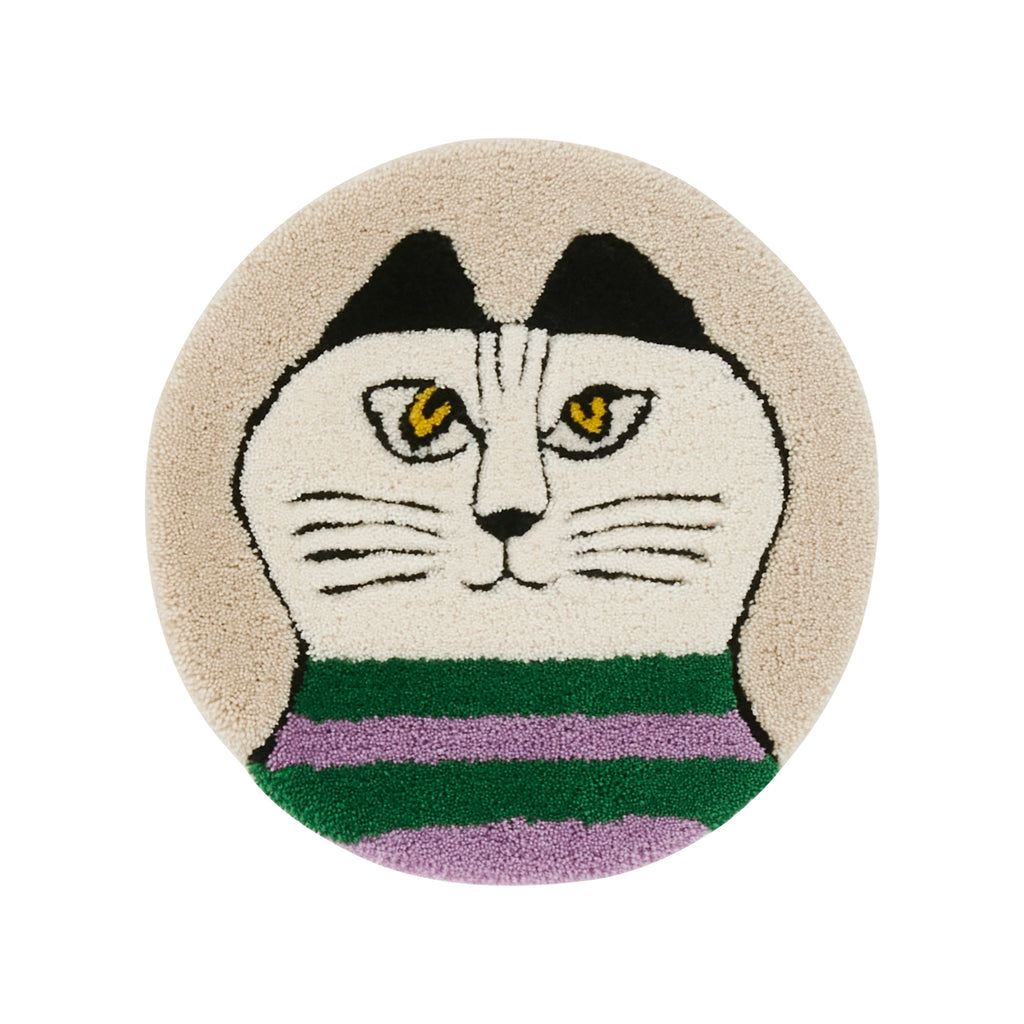 ピンク×オレンジ、パープル×グリーン、イエロー×ブルーの3色展開で、ミンミの瞳の色がそれぞれ異なるのもさりげないポイント。お部屋に明るい差し色を添えてくれるチェアパッドです。
