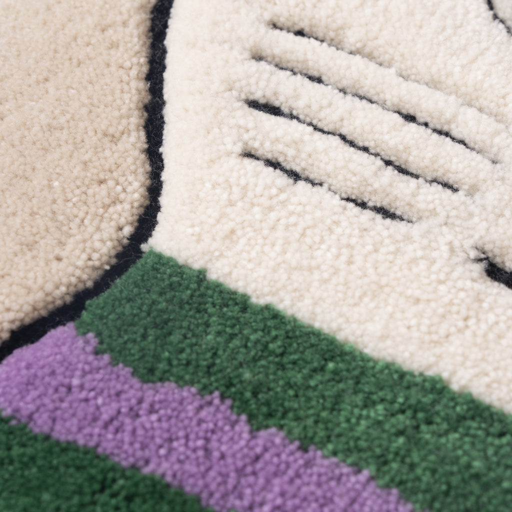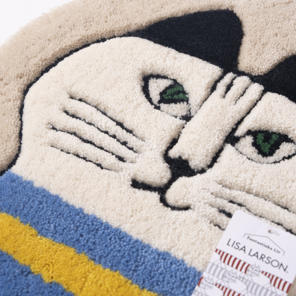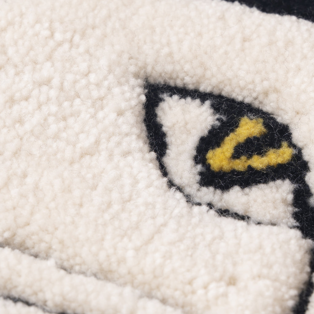 ピンク×オレンジ、パープル×グリーン、イエロー×ブルーの3色展開で、ミンミの瞳の色がそれぞれ異なるのもさりげないポイント。お部屋に明るい差し色を添えてくれるチェアパッドです。