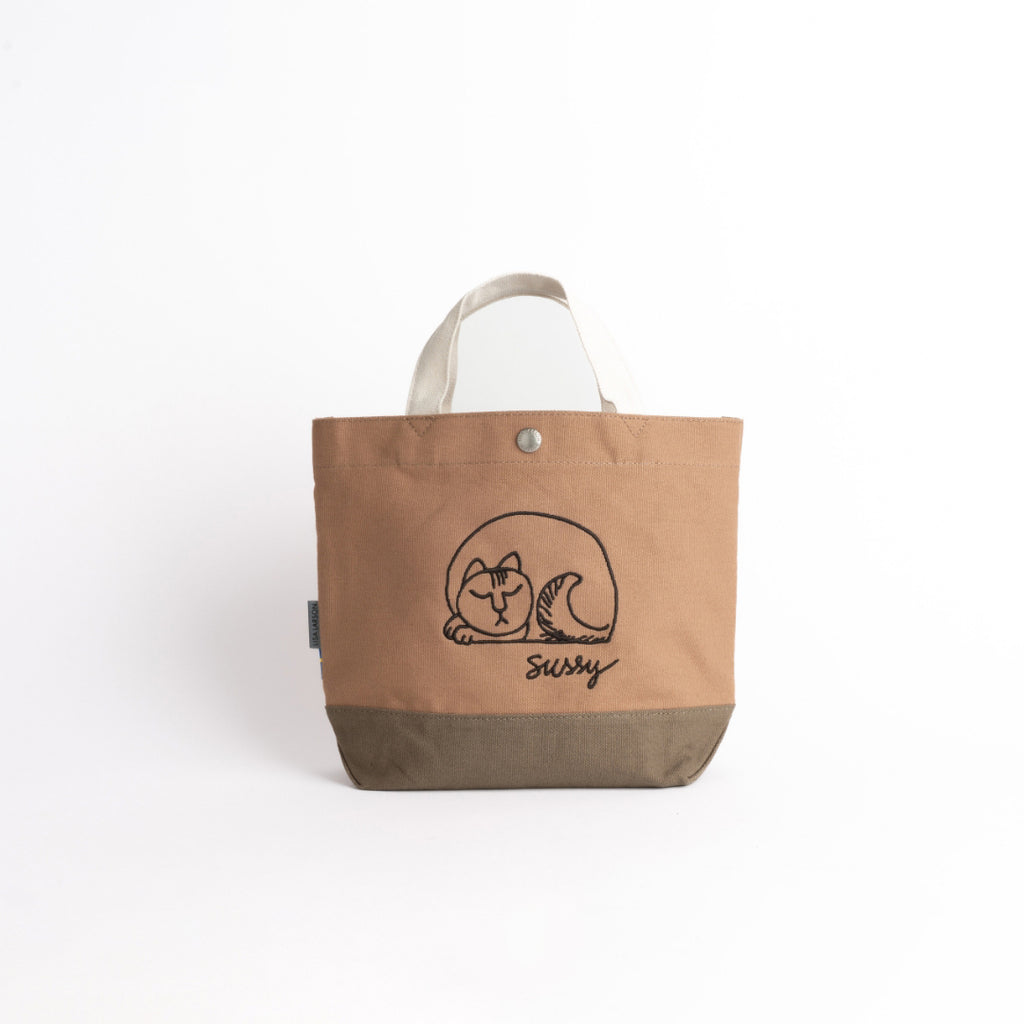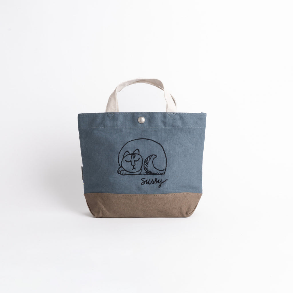 すやすや眠るスッシーの刺繍が、そっと寄り添ってくれるミニトート。