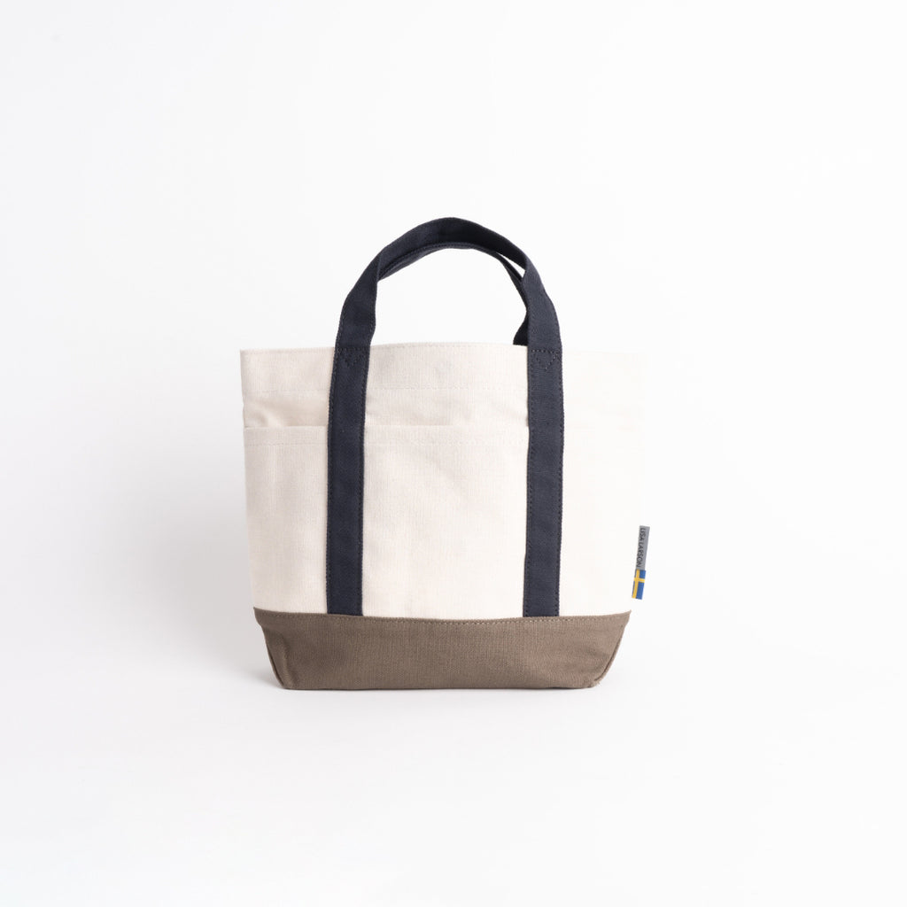 清潔感のある軽やかな色。ネイビーの持ち手が差し色に。スレートブルー
