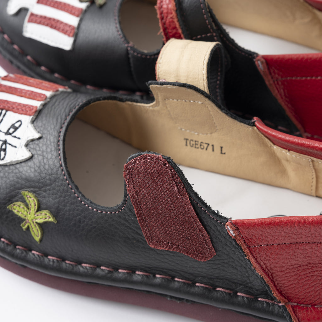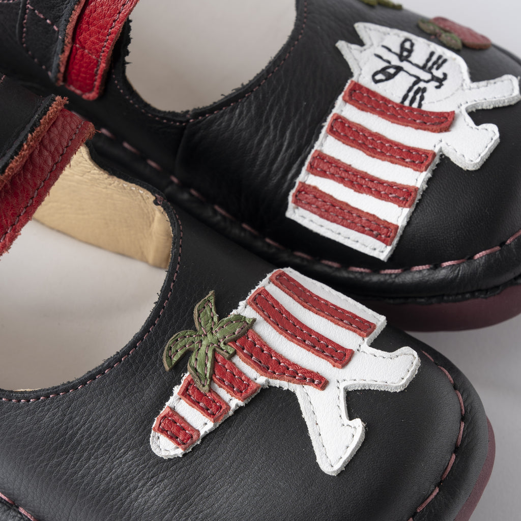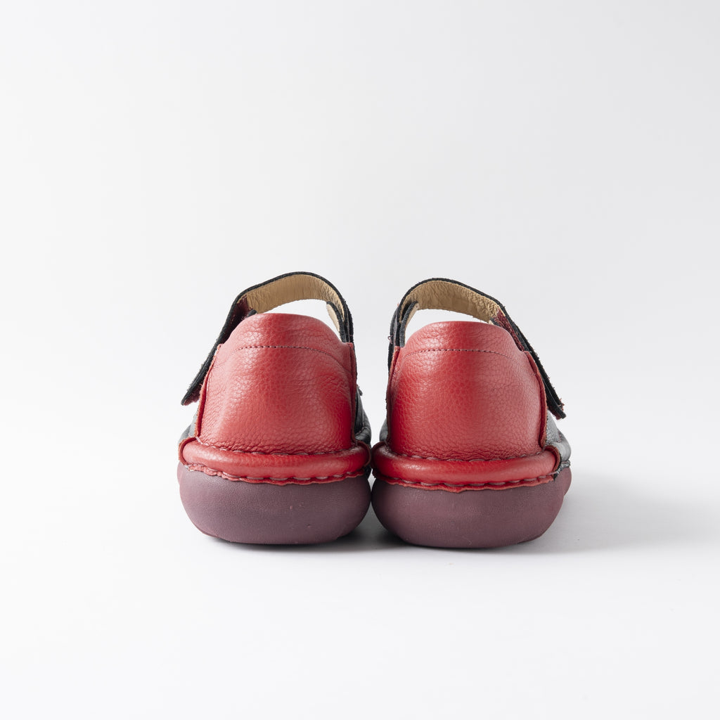 職人の手で一針一針、5層ソールと本体を手縫いしています。ハッピーテイストで温もりのある世界観に癒されながら、足元をポップに彩ります。