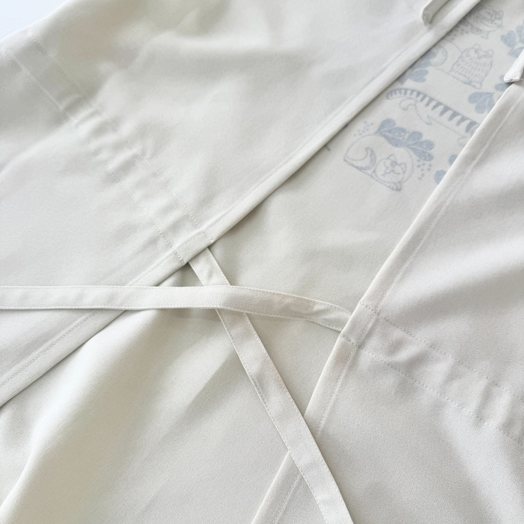 スケッチねこたちのLeaves Seriesがエプロンになりました。モチーフには「ラバープリント加工」を施し、お気に入りの一着を選ぶようなカジュアルな感覚をエプロンに落とし込みました。リサ・ラーソンの筆記体サインを添えた、アート性の高い一着。
