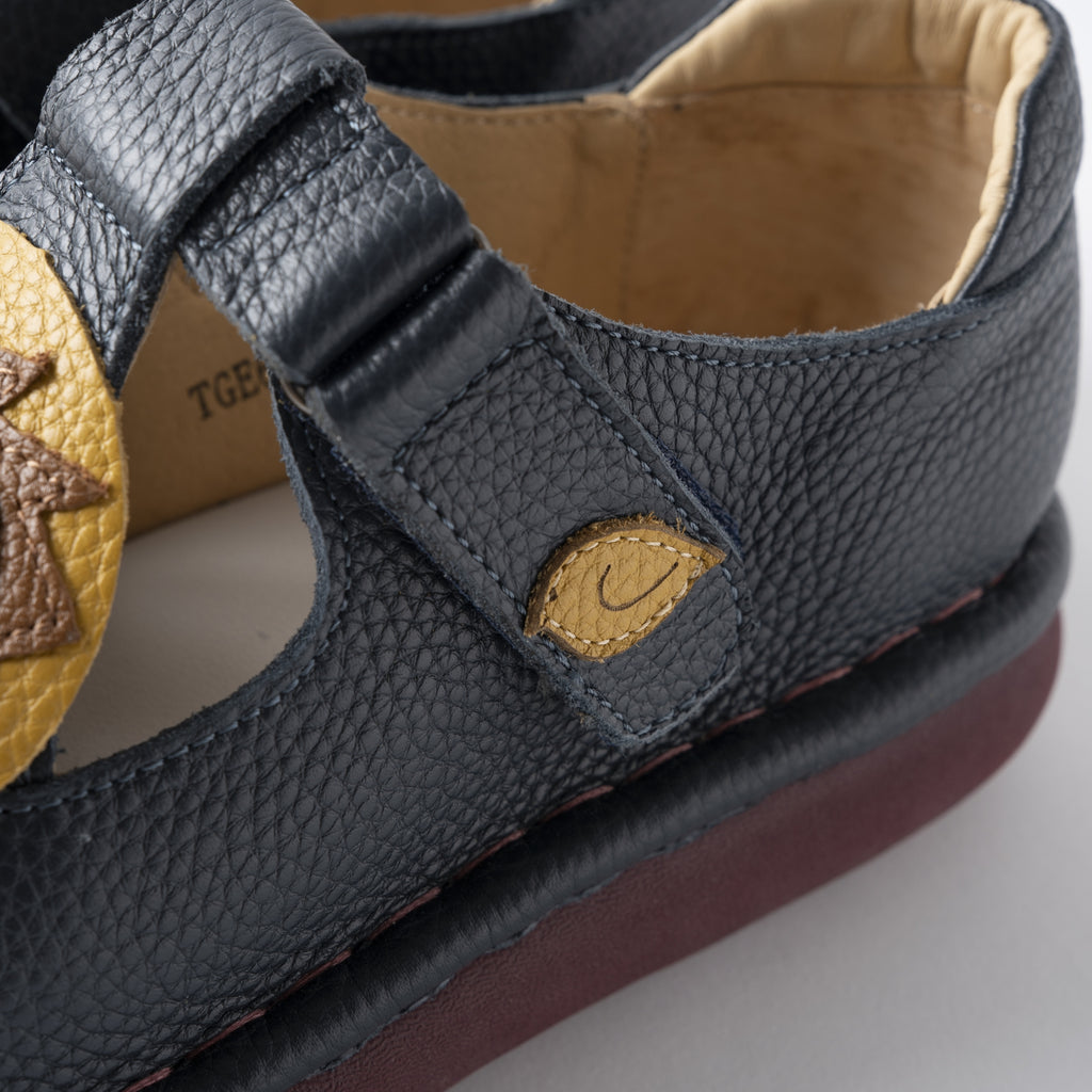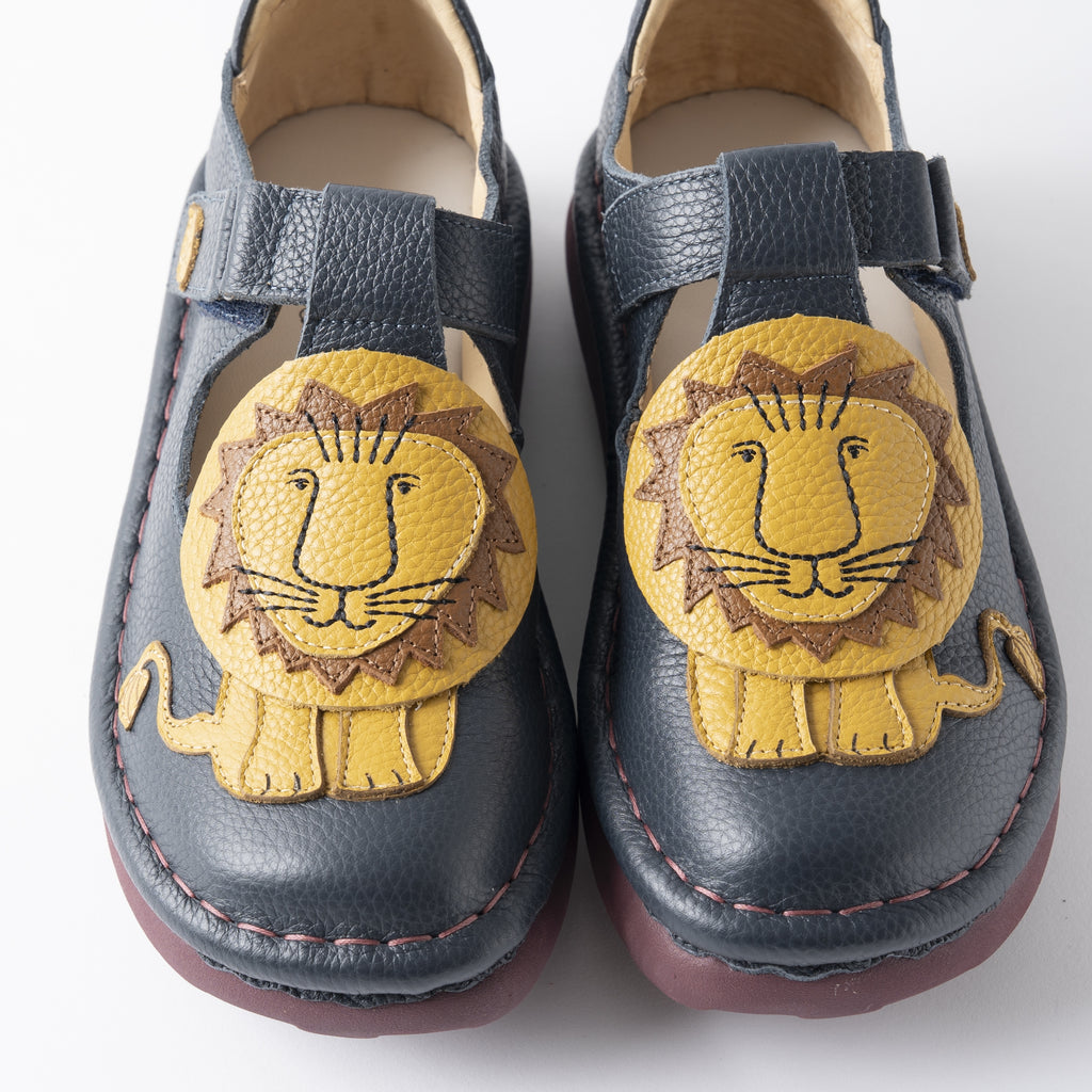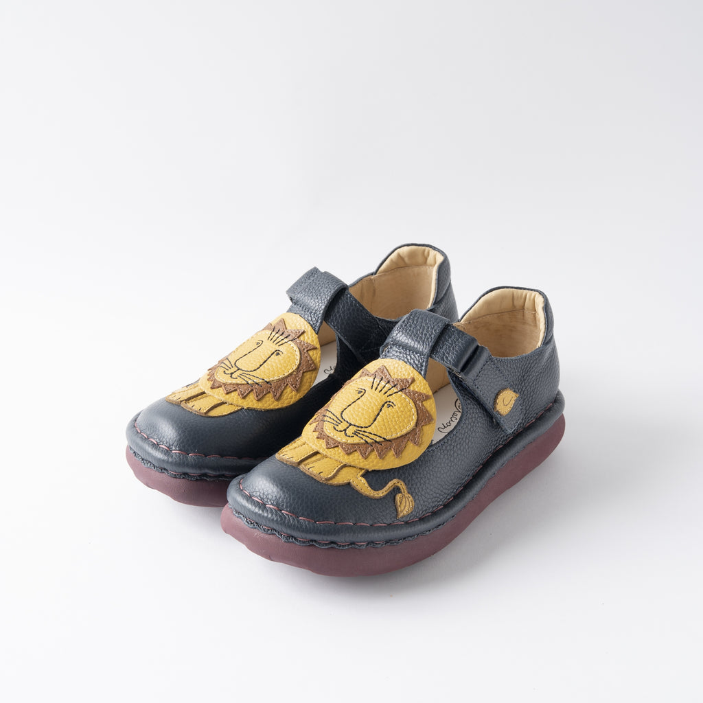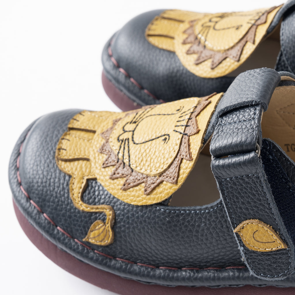 ひとつひとつ丁寧に縫い合わせたライオンモチーフのデザインに、ころんとした丸みのあるフォルムが愛らしく、マジックテープ仕様で着脱もスムーズ。足にやさしくフィットし、歩きやすさにもこだわった一足です。