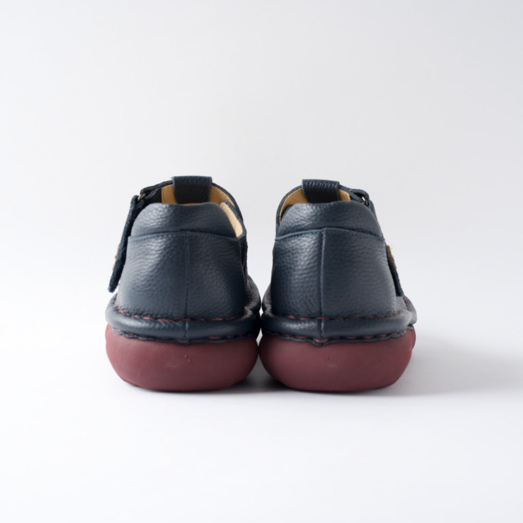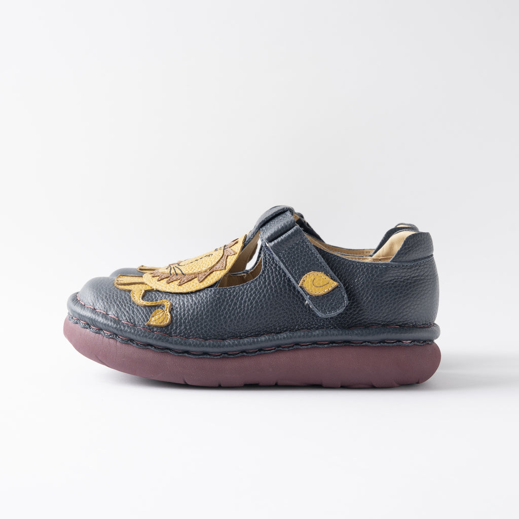 職人の手で一針一針、5層ソールと本体を手縫いしています。ハッピーテイストで温もりのある世界観に癒されながら、足元をポップに彩ります。