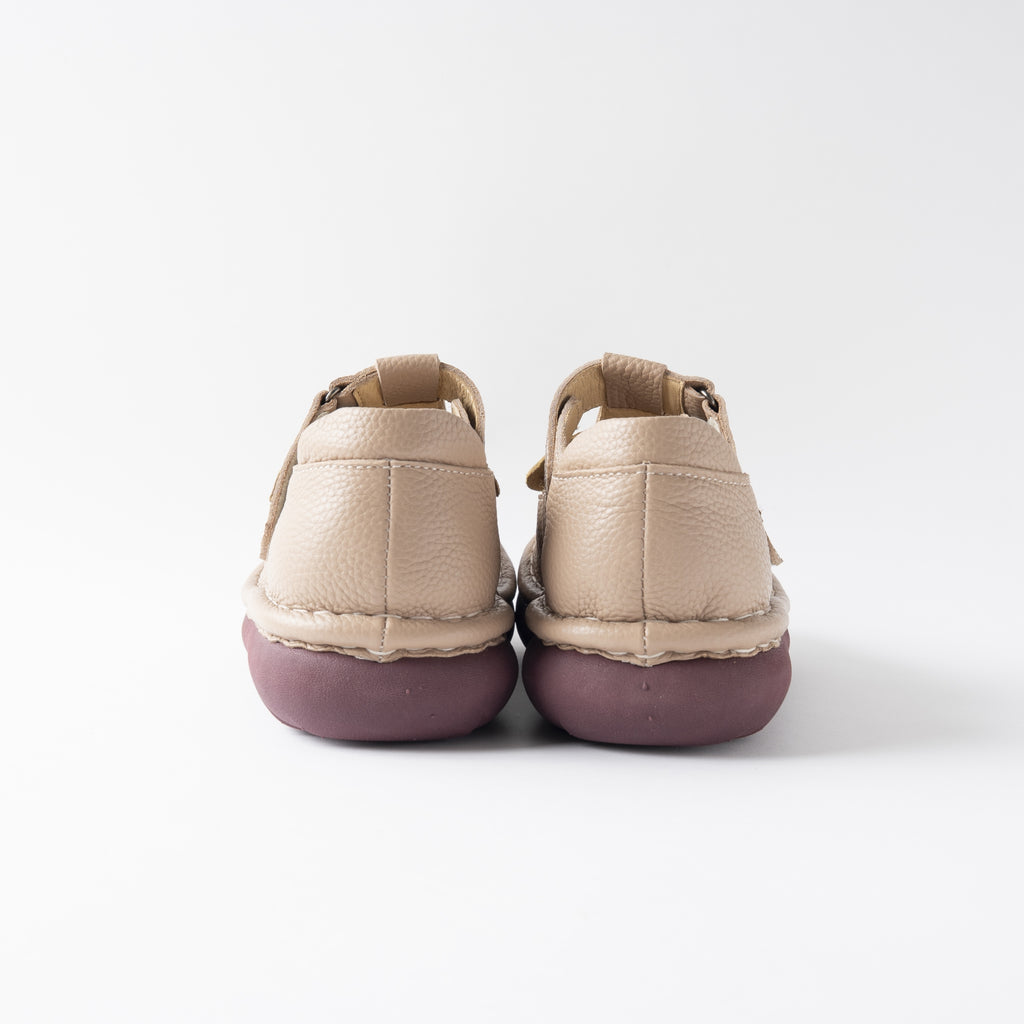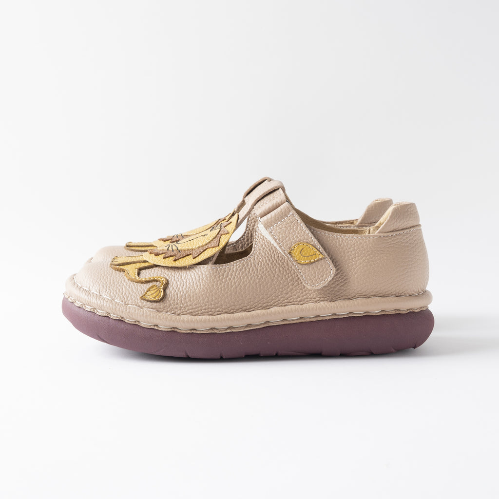 職人の手で一針一針、5層ソールと本体を手縫いしています。ハッピーテイストで温もりのある世界観に癒されながら、足元をポップに彩ります。