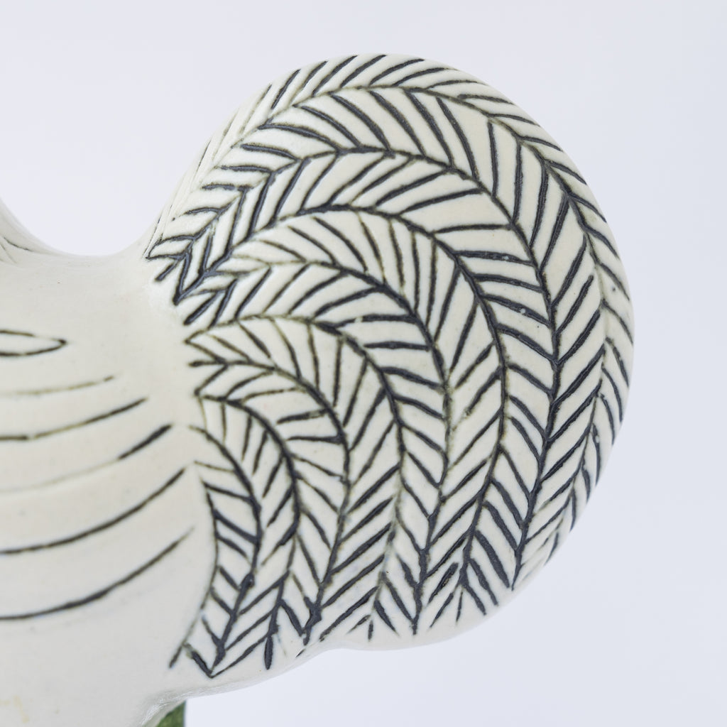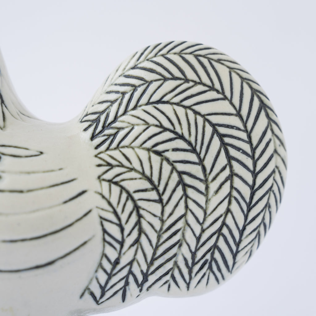 ぽってりとした丸みのあるフォルムや、やさしい表情、羽の描線などに、リサらしい温かみがあらわれています。