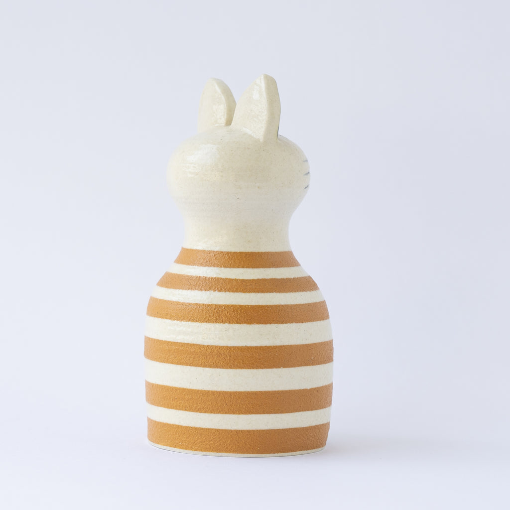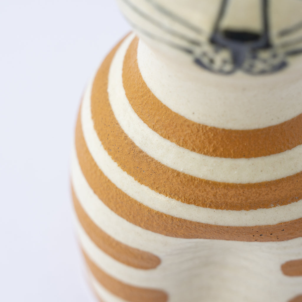 ゲームのコマをモチーフにデザインされただけあって、3匹揃えたときのカラフルなボーダーが印象的。こちらのTrappは砂糖入れとして作られました。ちなみに一番小さなTrippはもともと塩入れ。私たちトンカチの手によって、美濃焼とコラボレーションしたソルト&ペッパーとして復刻しています。