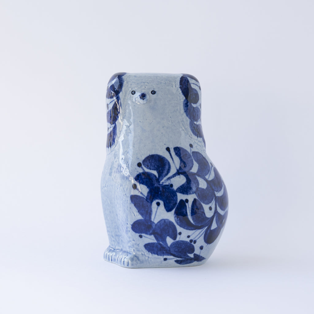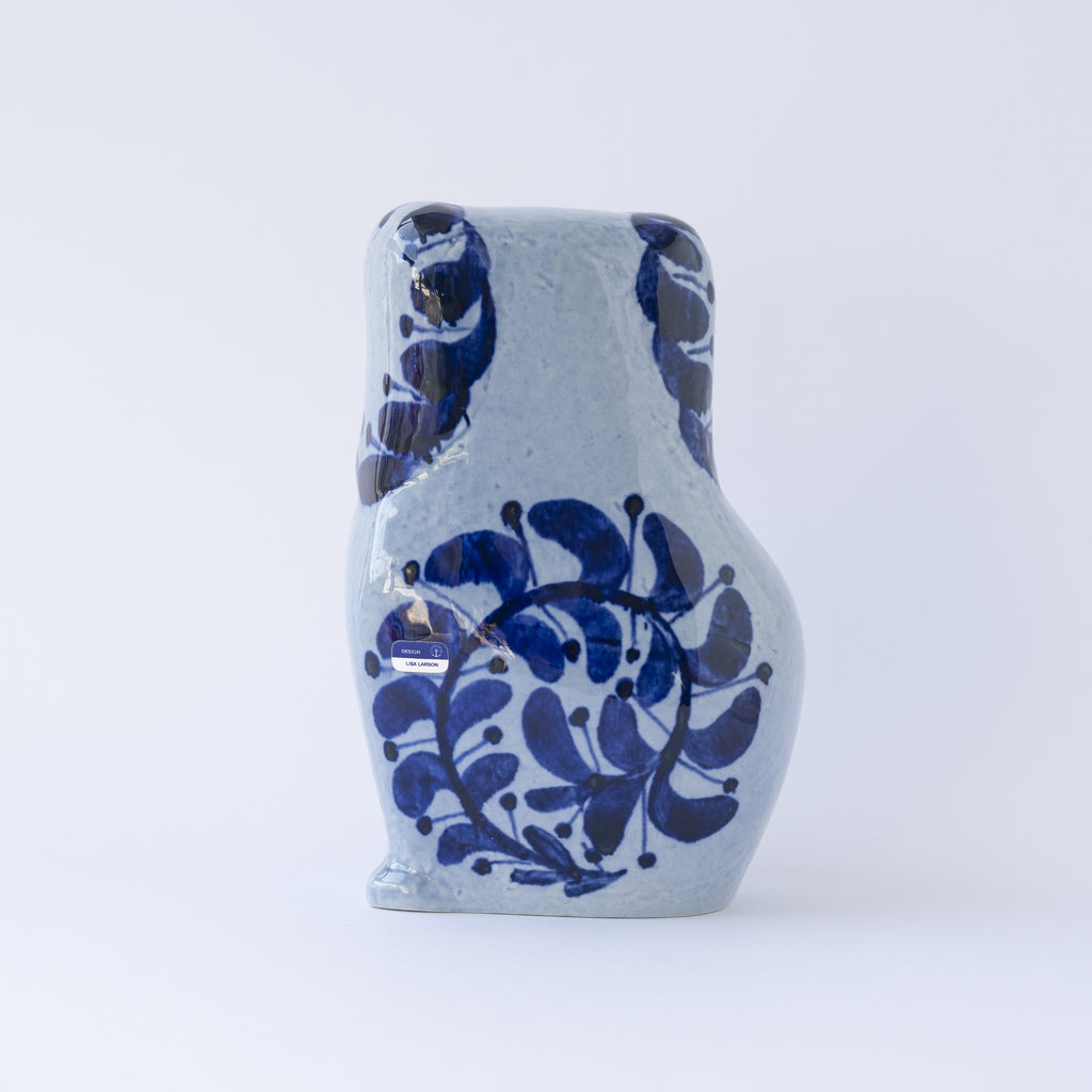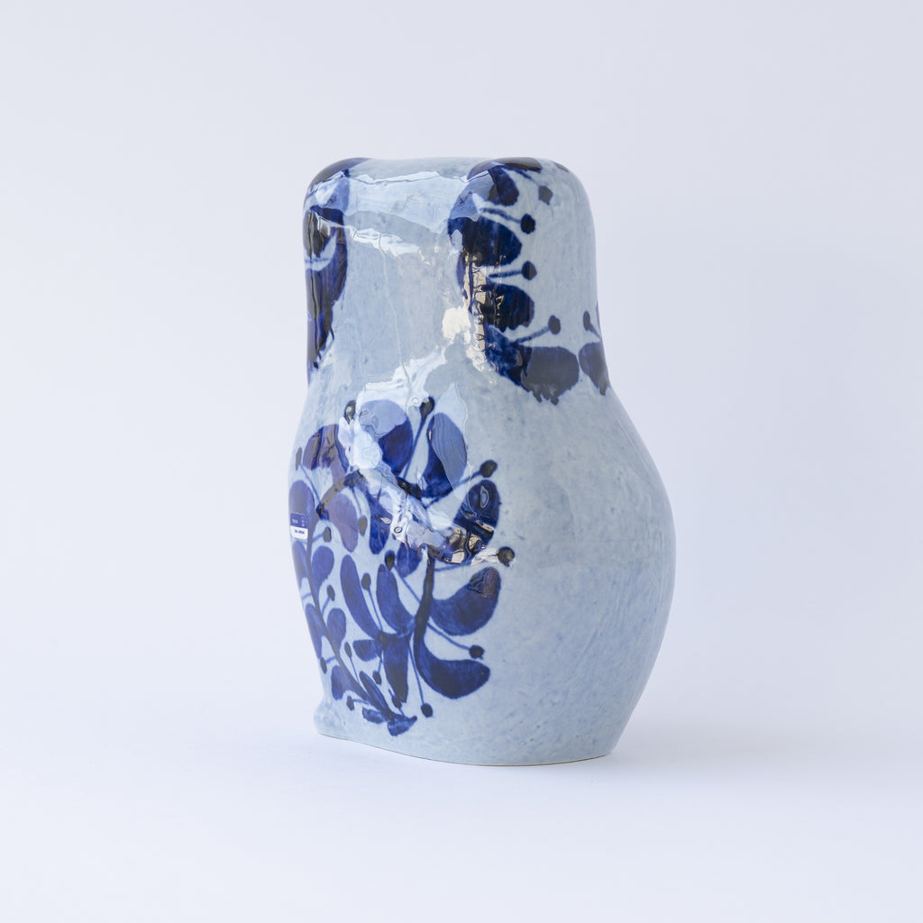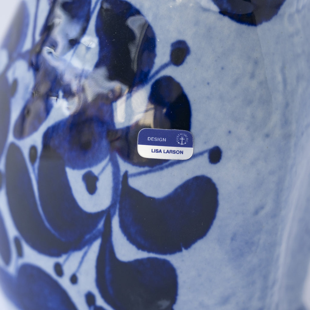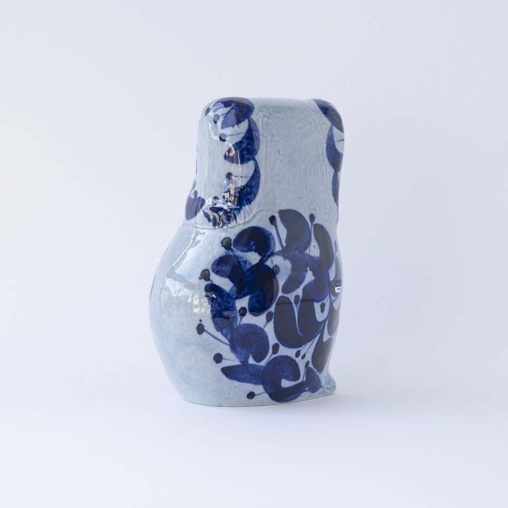 水色とブルーの柄のコントラストが美しい作品。職人さんの筆使いを感じられる模様は、どこか和風な雰囲気も持ち合わせています。高さは約18cmと大きめのサイズ感なので、存在感も抜群です。