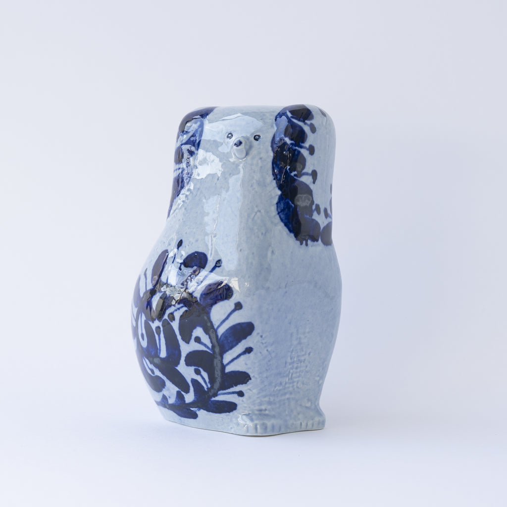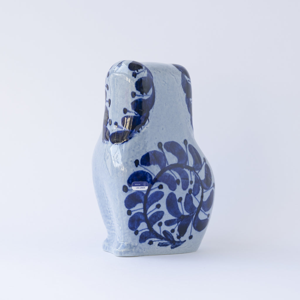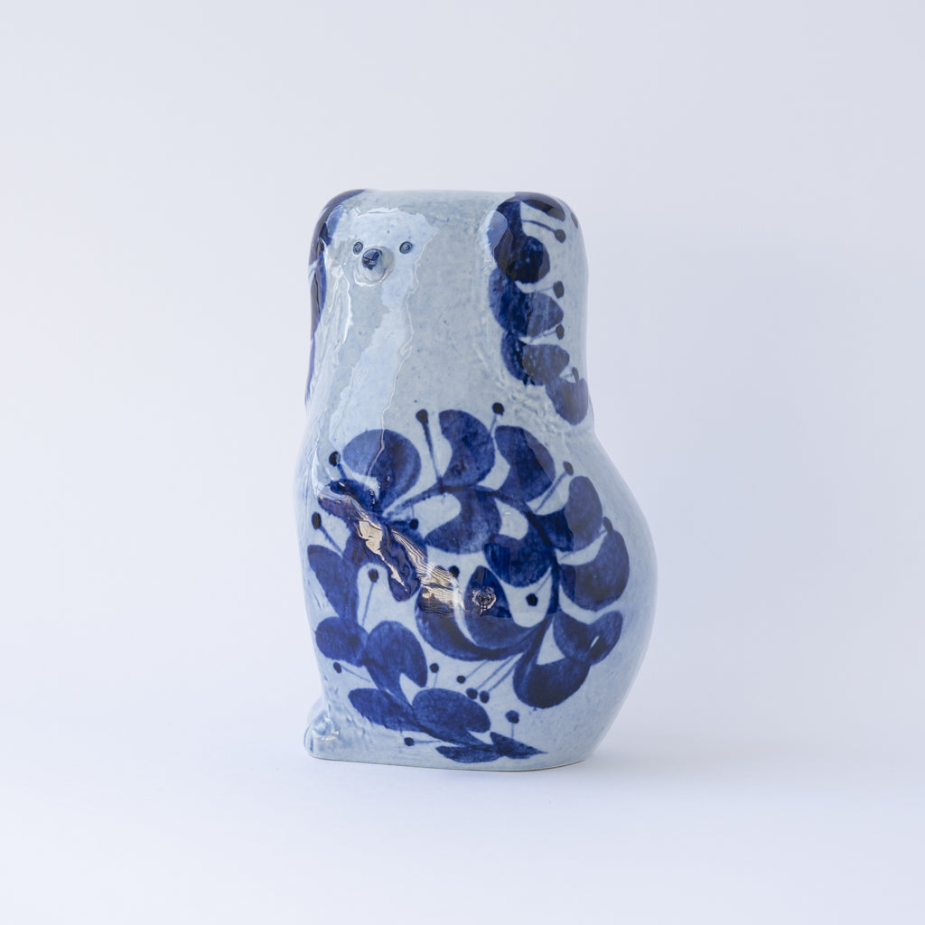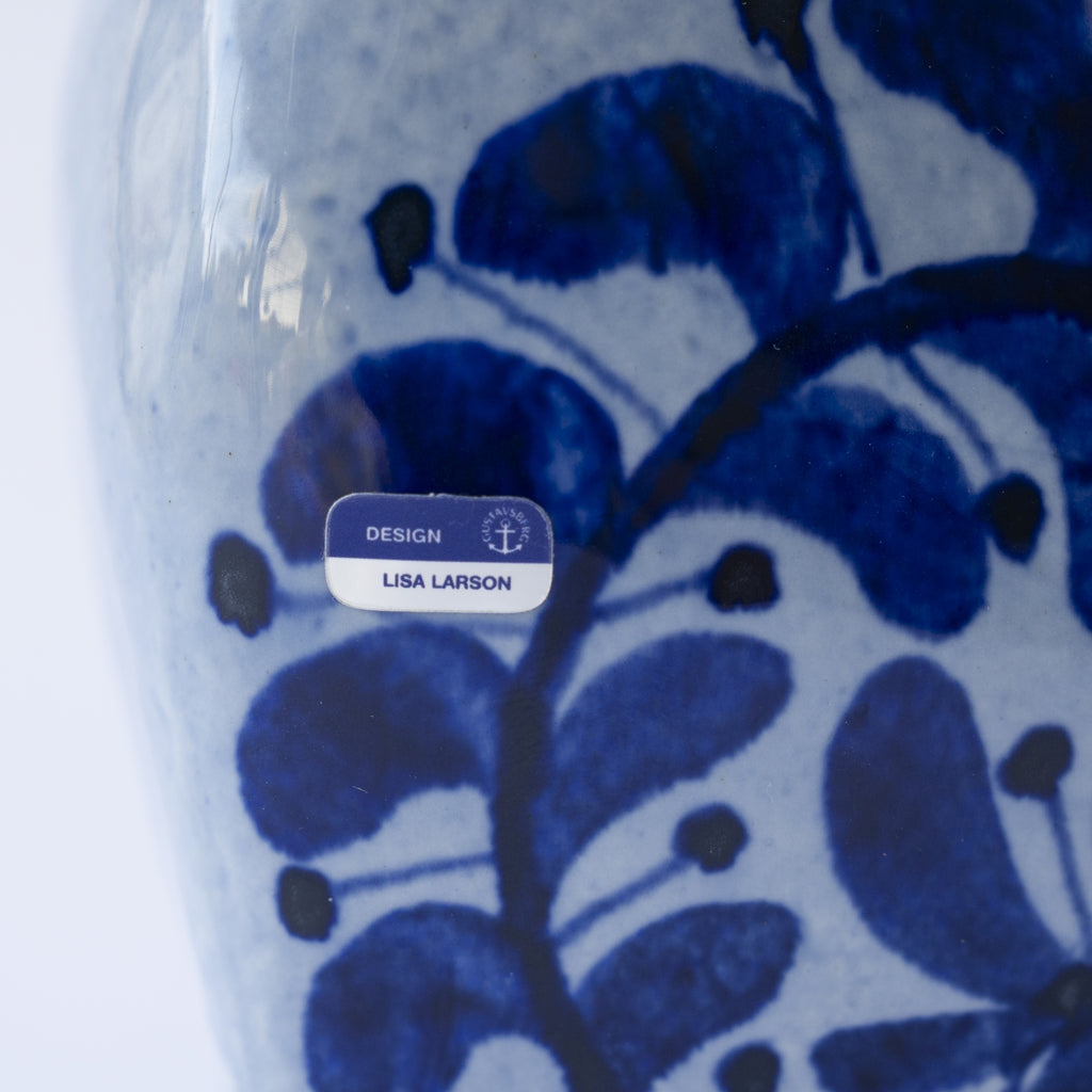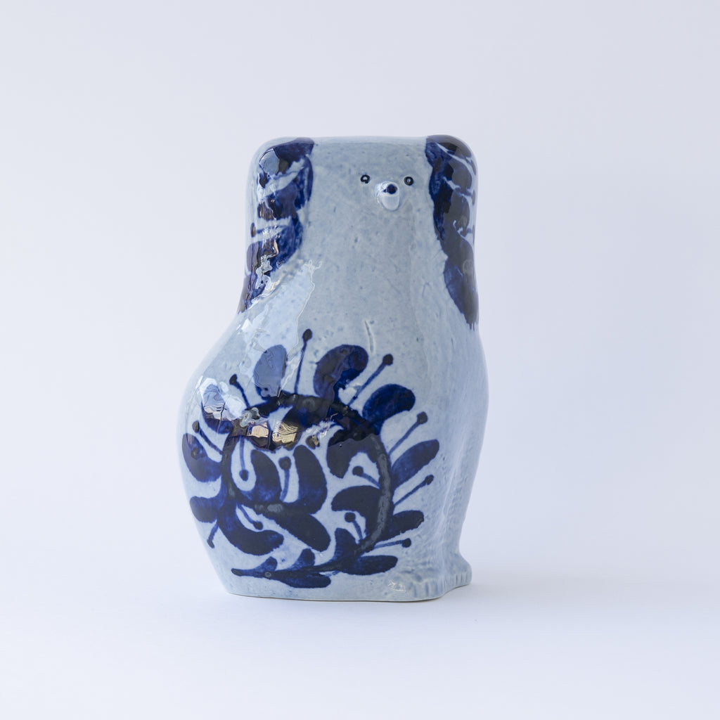 水色とブルーの柄のコントラストが美しい作品。職人さんの筆使いを感じられる模様は、どこか和風な雰囲気も持ち合わせています。高さは約18cmと大きめのサイズ感なので、存在感も抜群です。