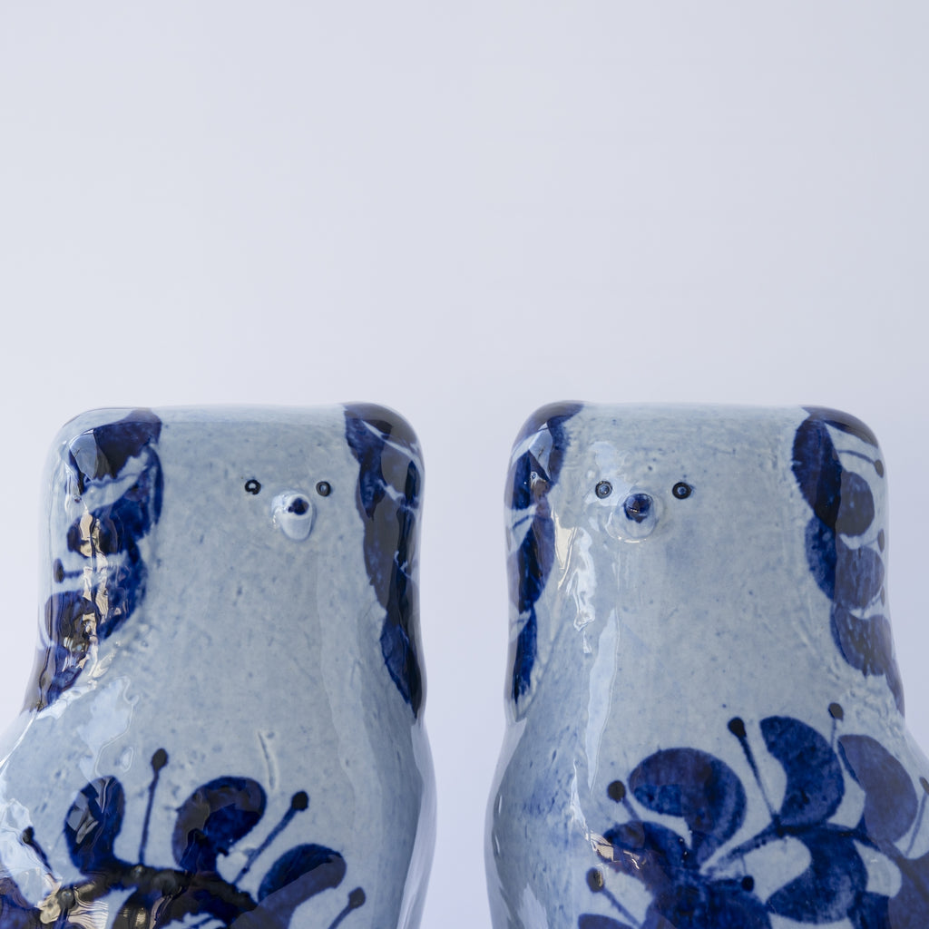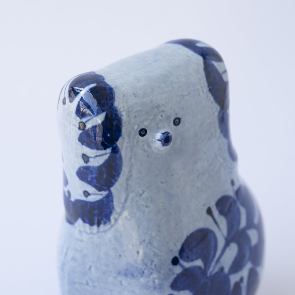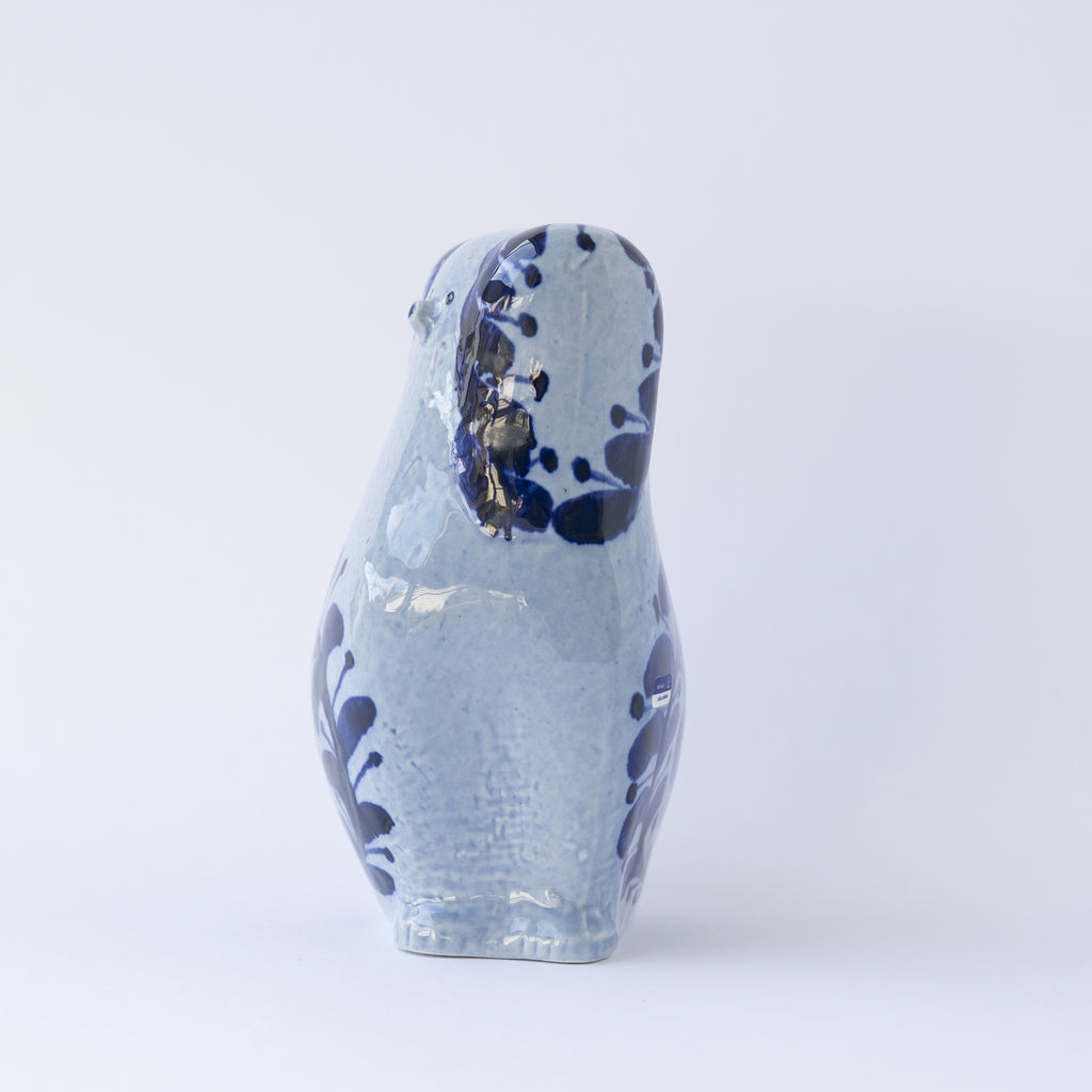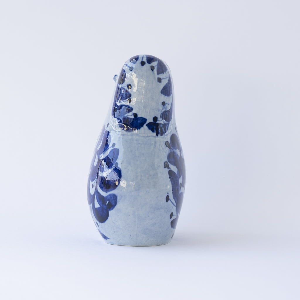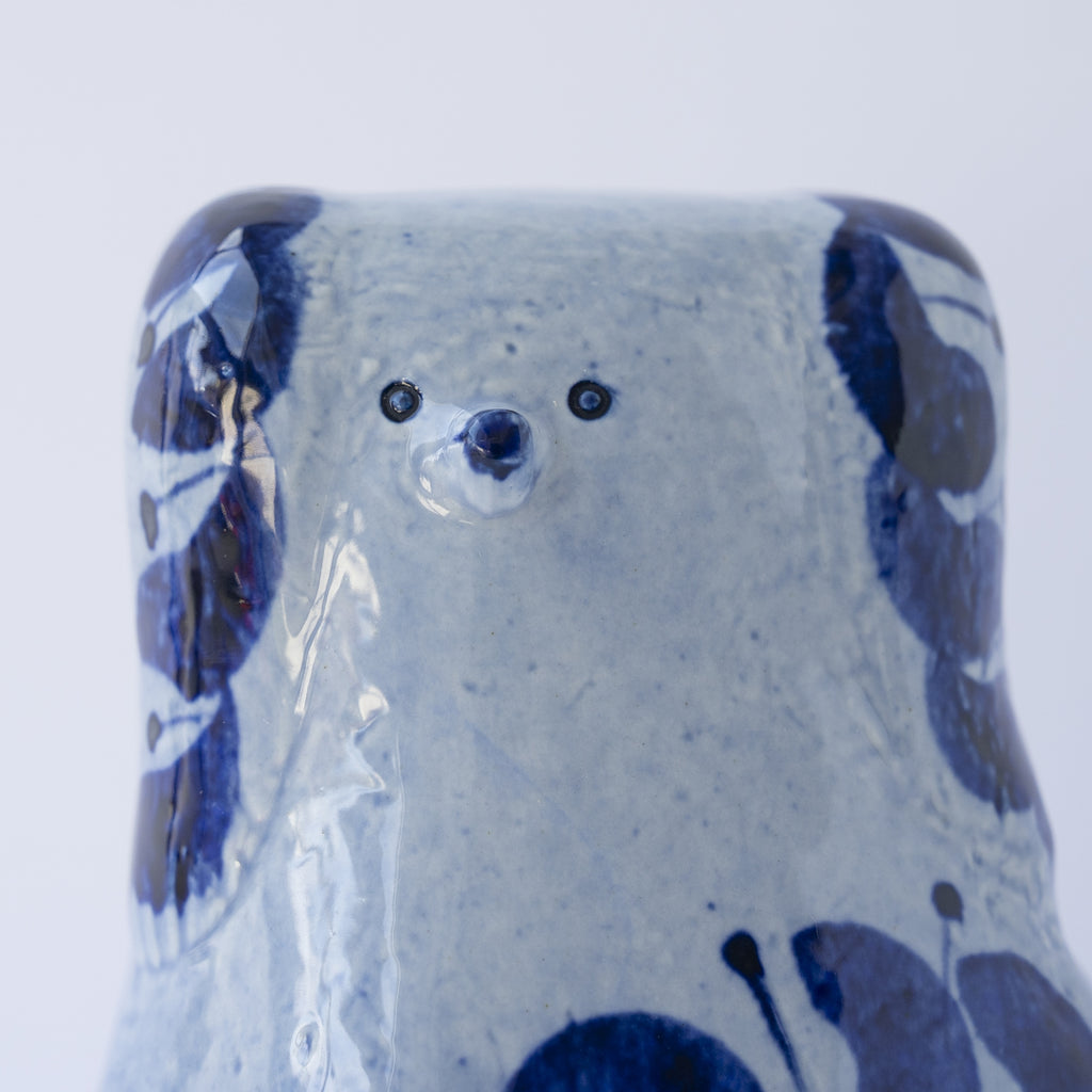 水色とブルーの柄のコントラストが美しい作品。職人さんの筆使いを感じられる模様は、どこか和風な雰囲気も持ち合わせています。高さは約18cmと大きめのサイズ感なので、存在感も抜群です。