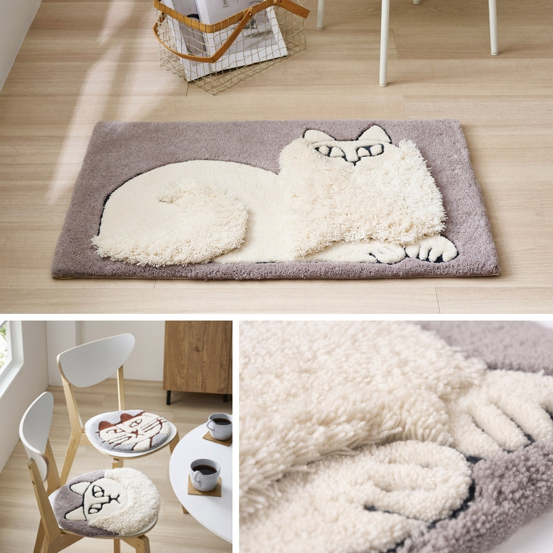 20種のマットと8種のチェアパッドが揃ってデビュー。お部屋に合わせて形を変えられるパズルマット、ふさふさの毛並みをイメージしたスケッチねこの「ソフィア」、そして食事やデスクワークの時間を快適にするチェアパッド。