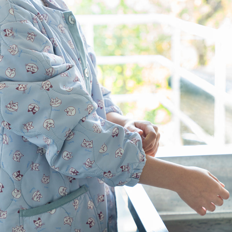スケッチねこたちのお顔パターンがかわいらしく、見た目も気持ちもぽかぽかに。さっと羽織れて家事や作業もスムーズにこなせます。2025年の冬の相棒に、新しいスモックとエプロンをご紹介いたします。