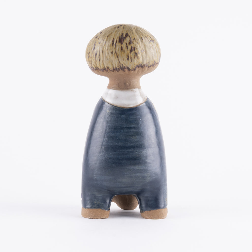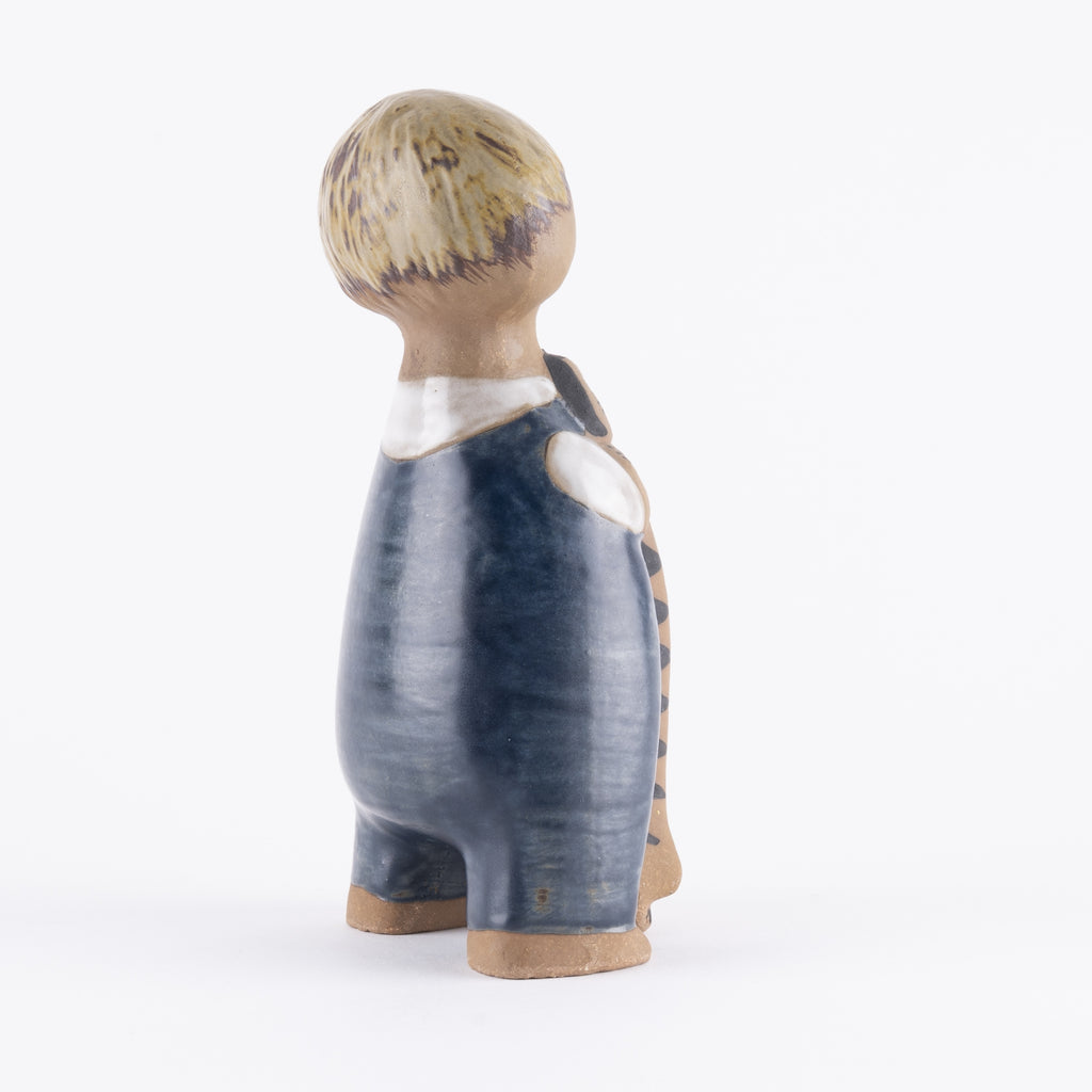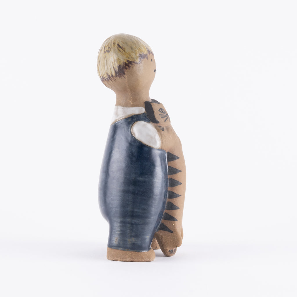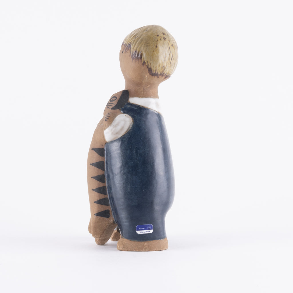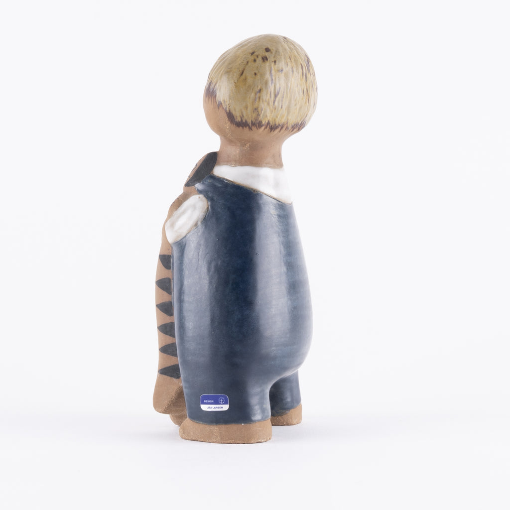 佩爾(Pelle)和一隻脾氣暴躁的貓在他面前握在他面前,笑容和和平的表情。 Kokeshi No Pele的原始作品,日本麗莎·拉爾森(Lisa Larson)系列。 Shamot製成的自然質地,表達溫暖。 “拉爾森兒童系列”由六人組成,Calle Johanna Susan Lotta Lotta Merlin Pelle。