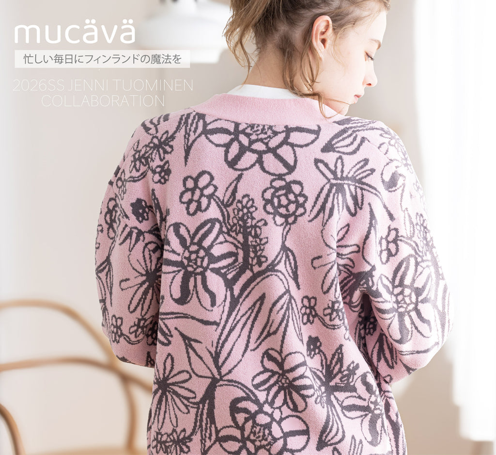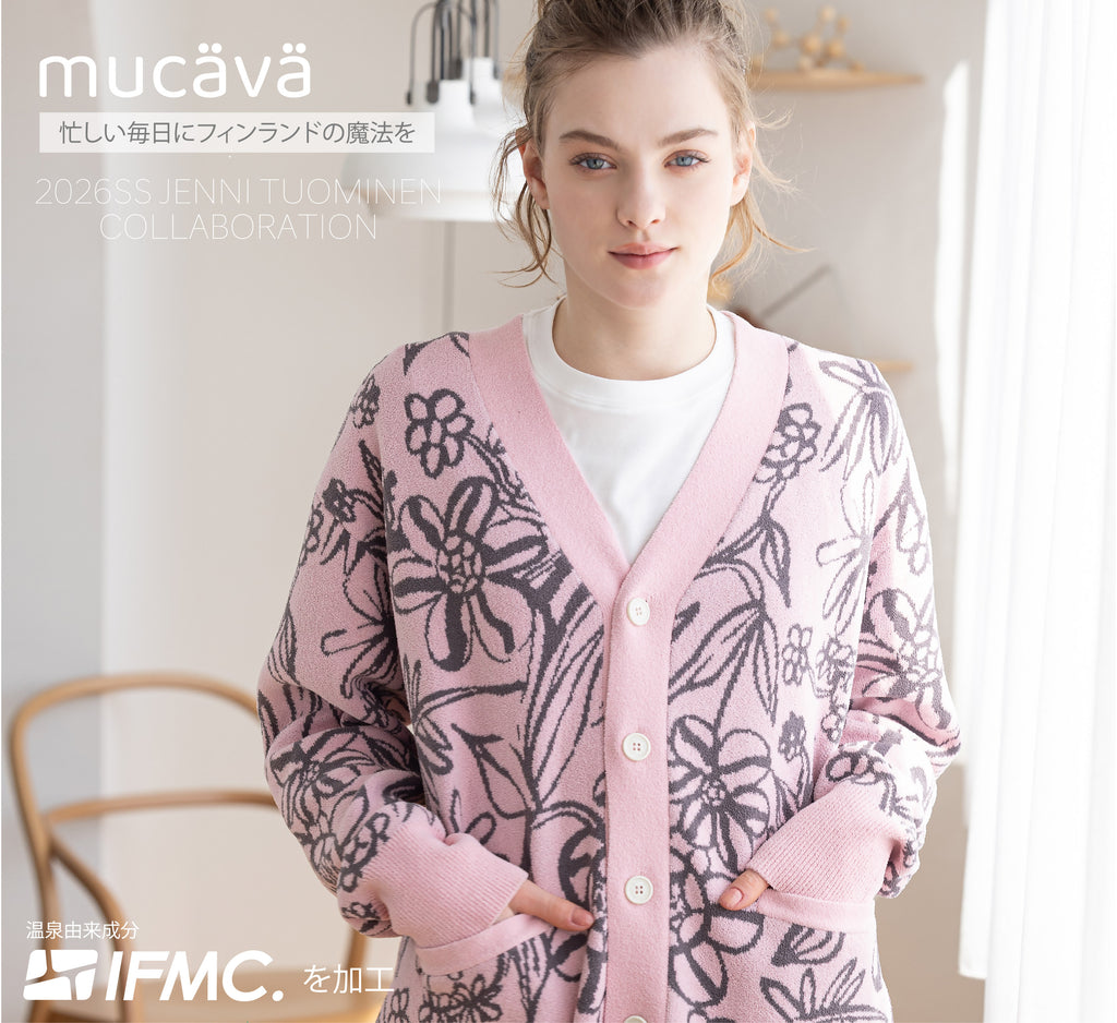 「mucävä」は、フィンランド由来のデザインを取り入れたワンマイル・ルームウェアブランド。着るだけで血行促進が期待される「IFMC.(イフミック)」加工の生地を使用し、日々のリラックスタイムに寄り添うアイテムを展開しています。mucava とは、フィンランド語で、「心地よい」という意味。着るだけで心地よく、体が整うルームウェアです。