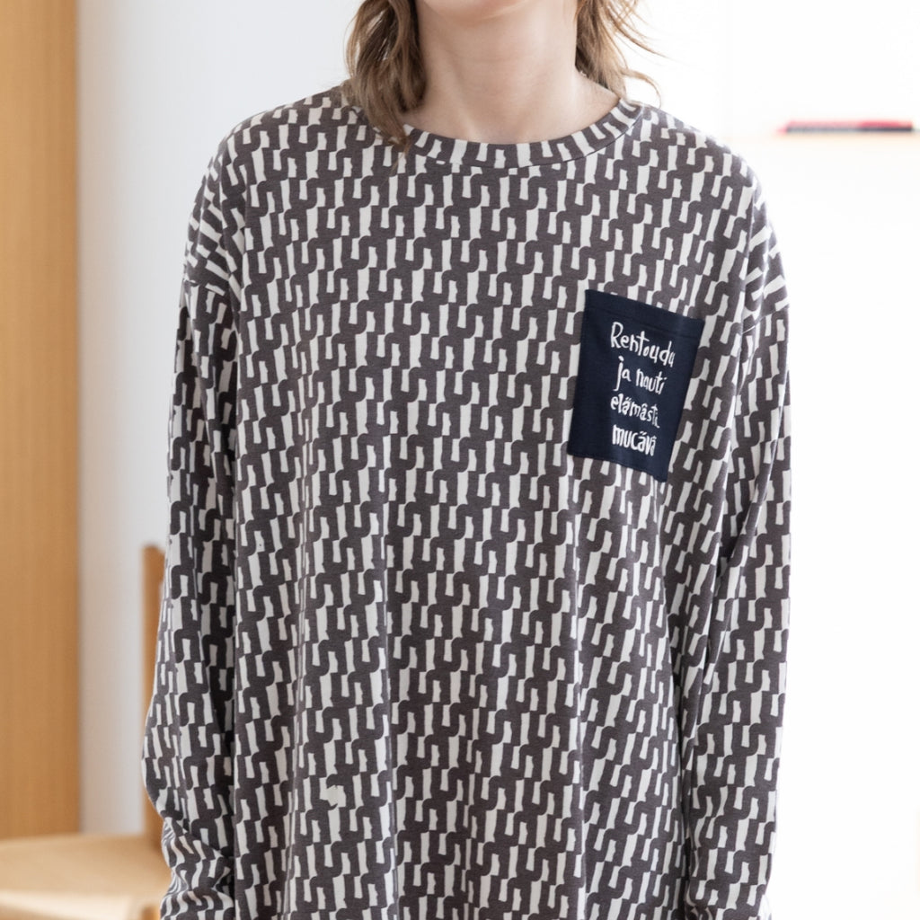 【mucava】キシリトール長袖Tワンピース(総柄・ブラック)