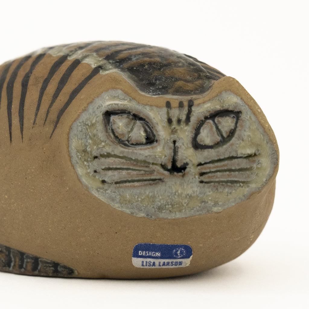 Lilla動物園(小動物園)系列中的一隻貓。斯蒂格·林德伯格(Stig Lindberg)在麗莎(Lisa)的工作室停了下來,他剛剛在古斯塔夫斯堡(Gustavsberg)找到了工作,他印象深刻。斯蒂格·林德伯格(Stig Lindberg)看到貓,敦促麗莎(Lisa)製作更多動物系列。那是“小動物園”系列,它是一個持續20多年的流行系列。